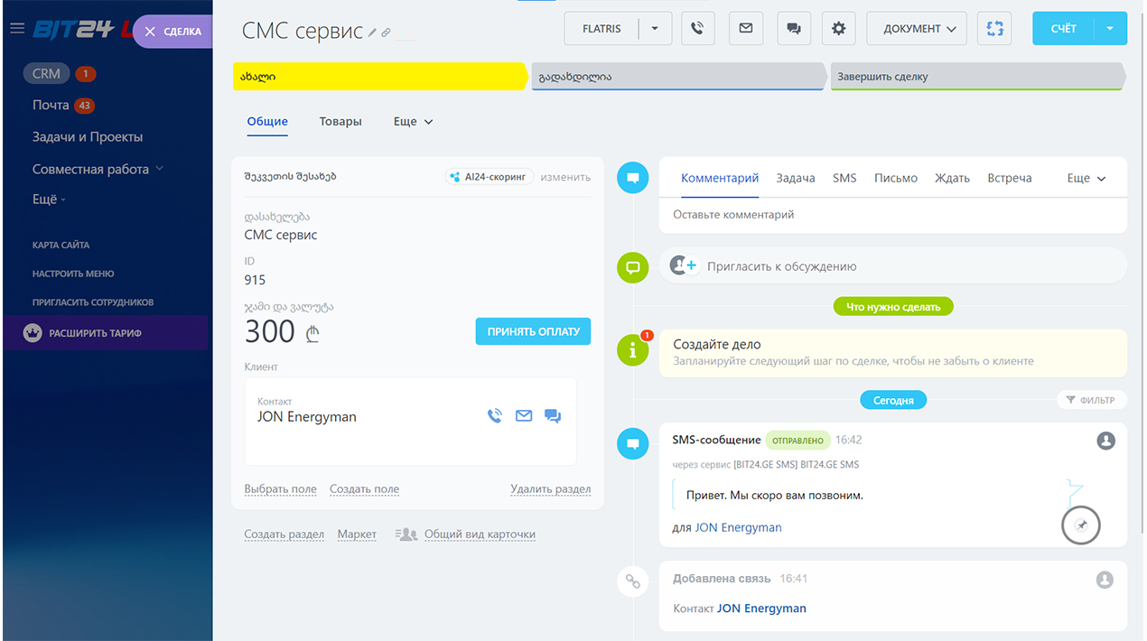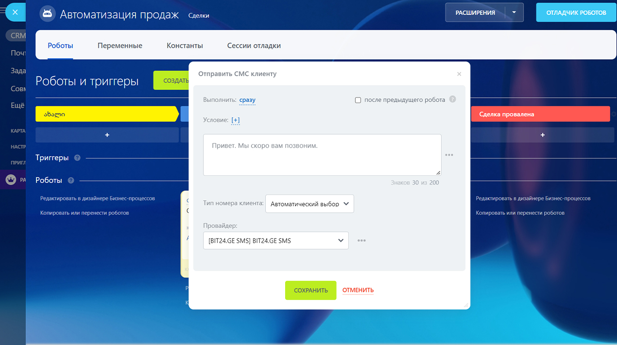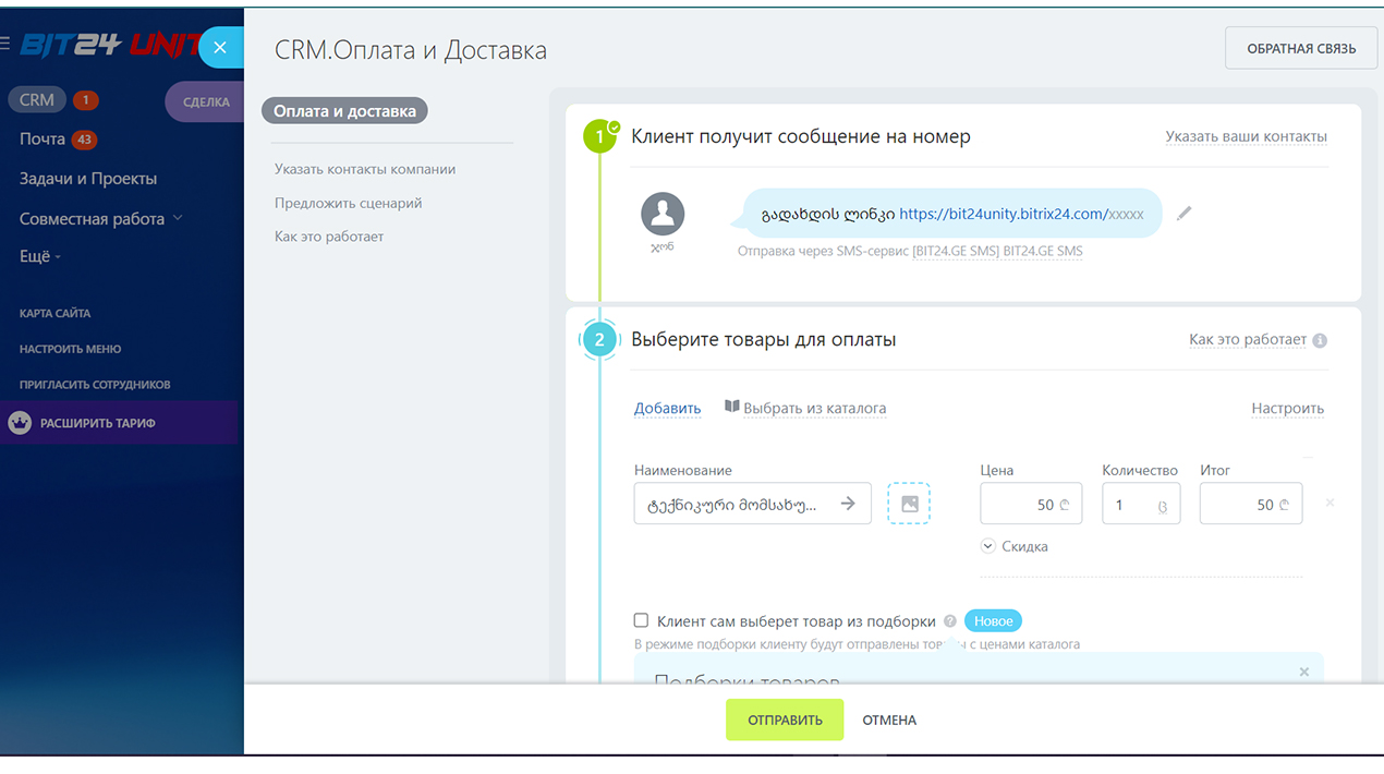 Сервис BIT24.GE SMS позволяет отправляете SMS вручную или автоматически, через :