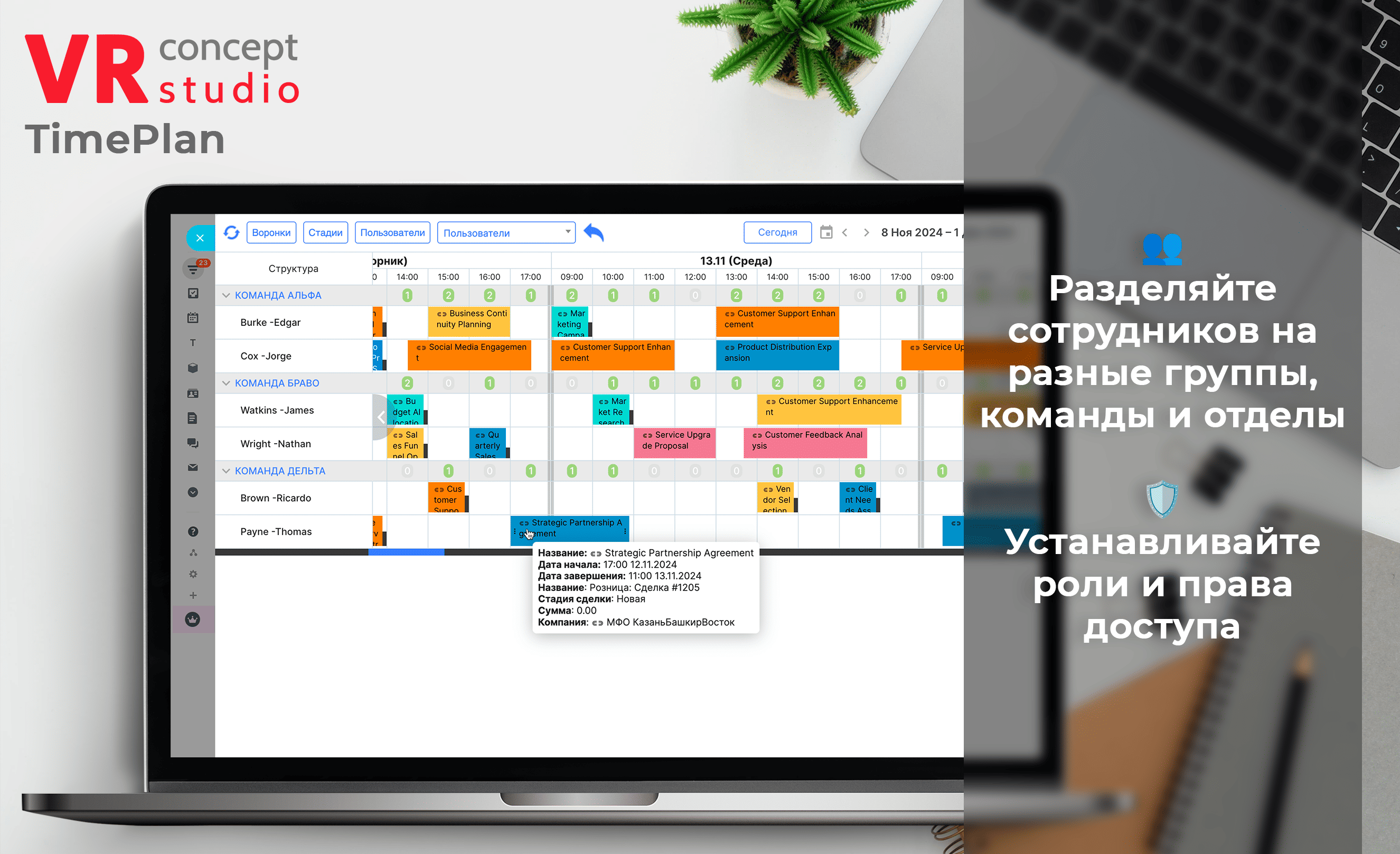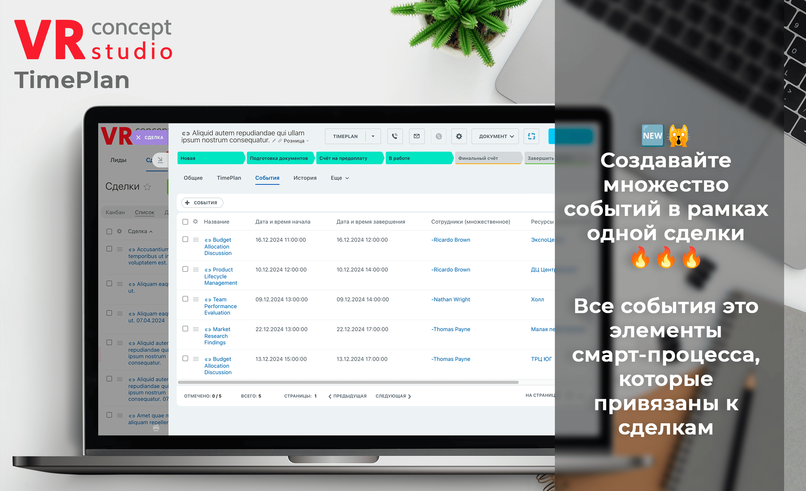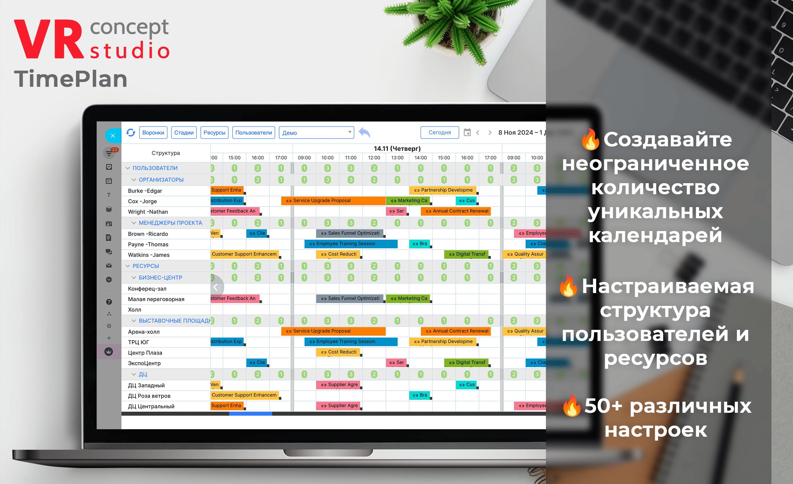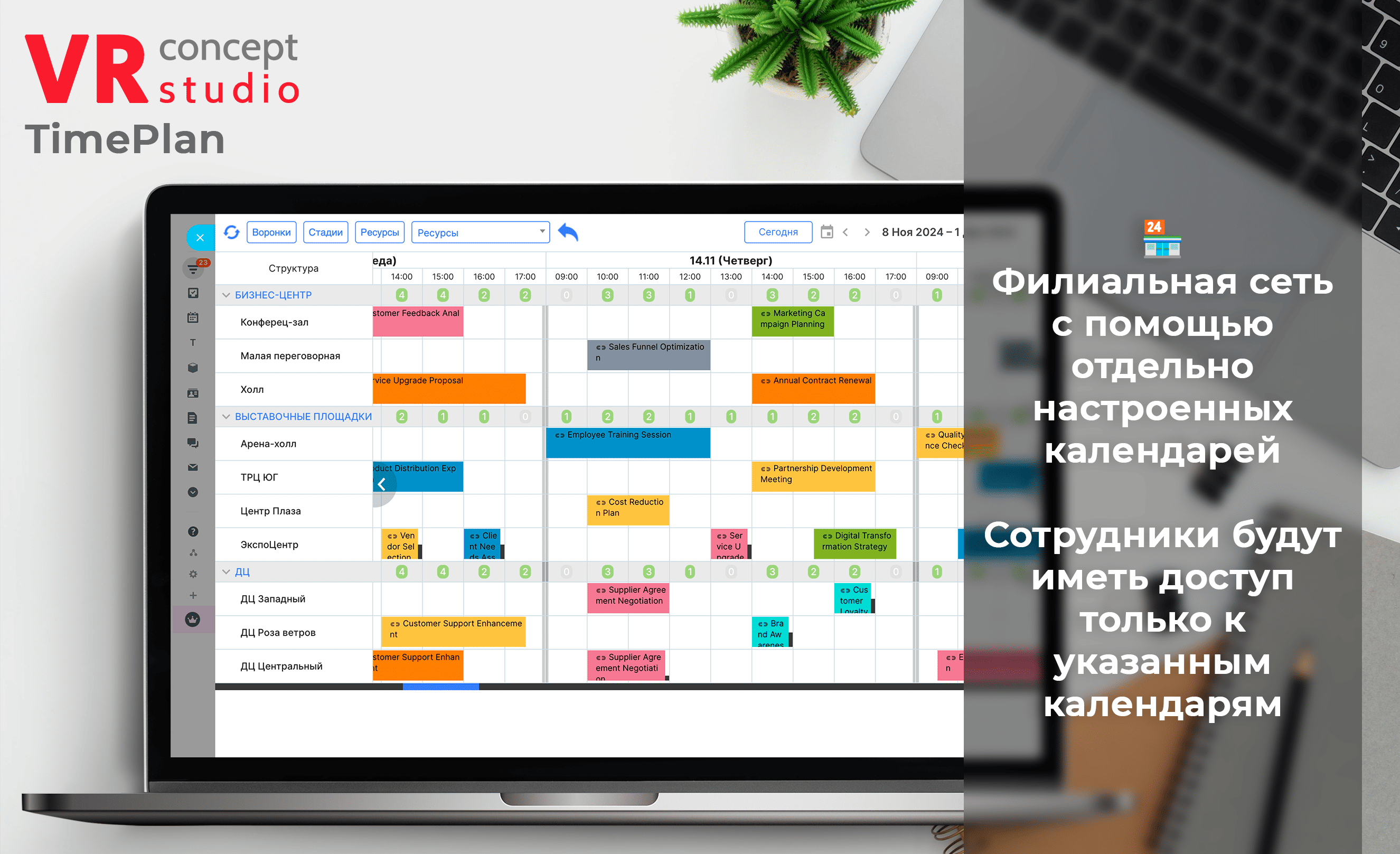 Удобное планирование для бронирования ресурсов, записи клиентов, управление временем сотрудников, учет аренды и многое другое позволяет реализовать TimePlan в вашем Битрикс24.