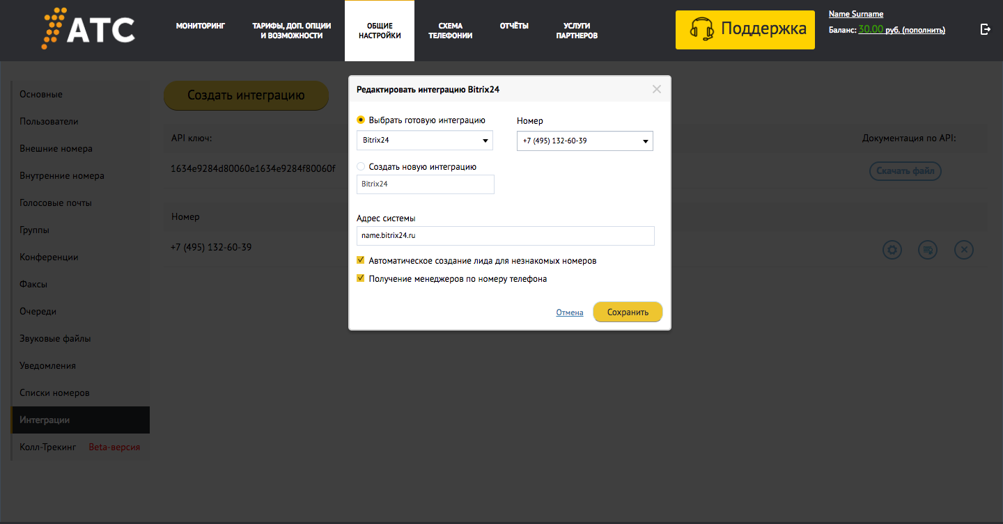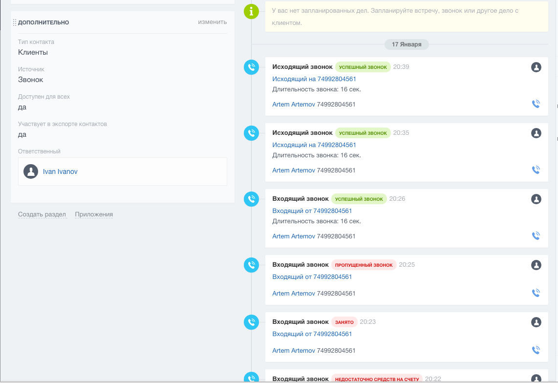 Автоматическое создание лидов при звонках с неизвестных номеров.