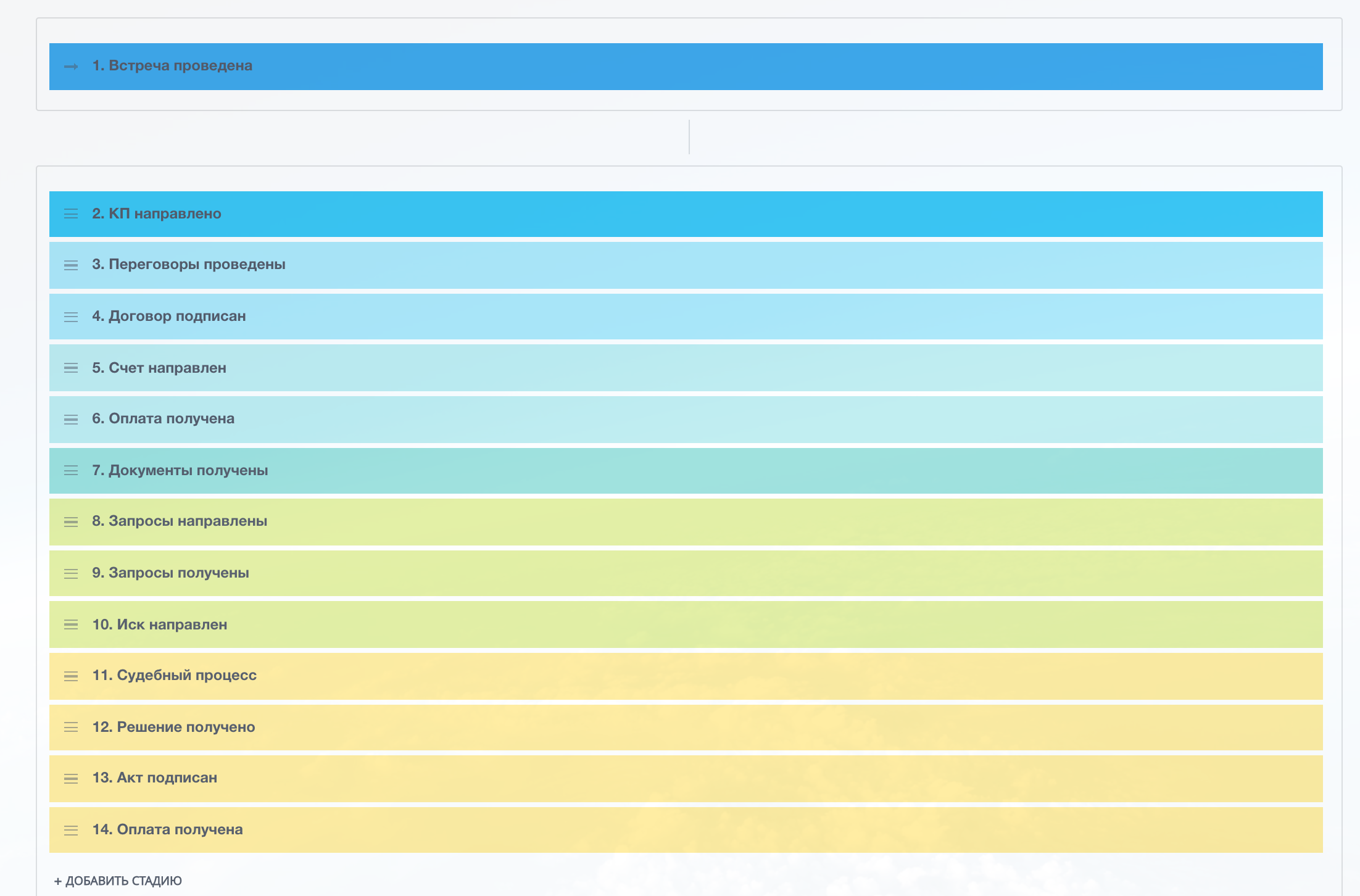 Направление Сделки «Банкротство Юр. лиц» состоит из следующих этапов: