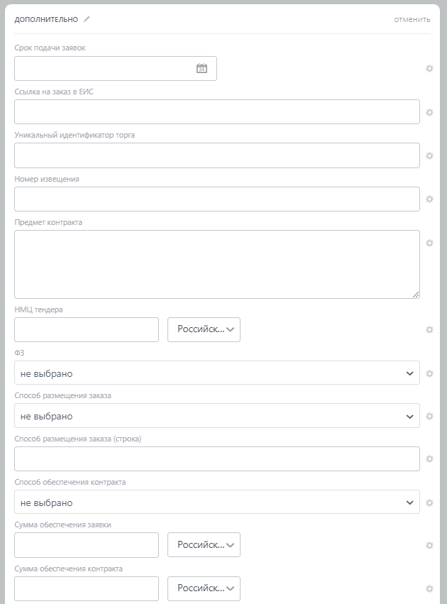 5. подготовлен широкий перечень пользовательских полей для любых нужд тендерной организации.