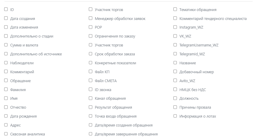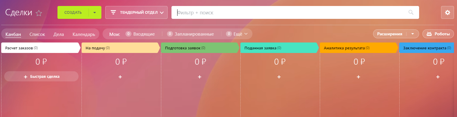 1. раздел Сделки (воронка Тендерный отдел) содержит этапы: