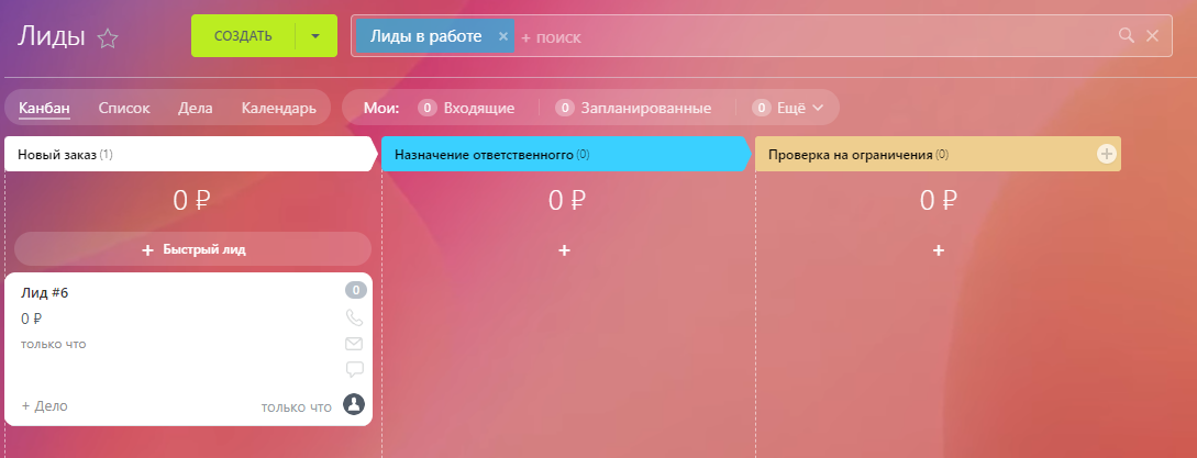 4. доработаны карточки лидов и сделок