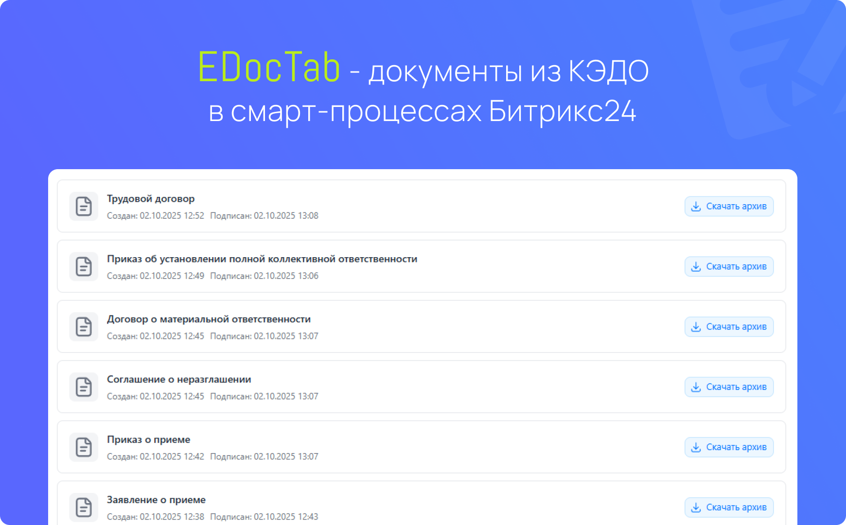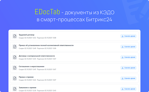 EDocTab — интеграция кадровых документов в Смарт-процессы