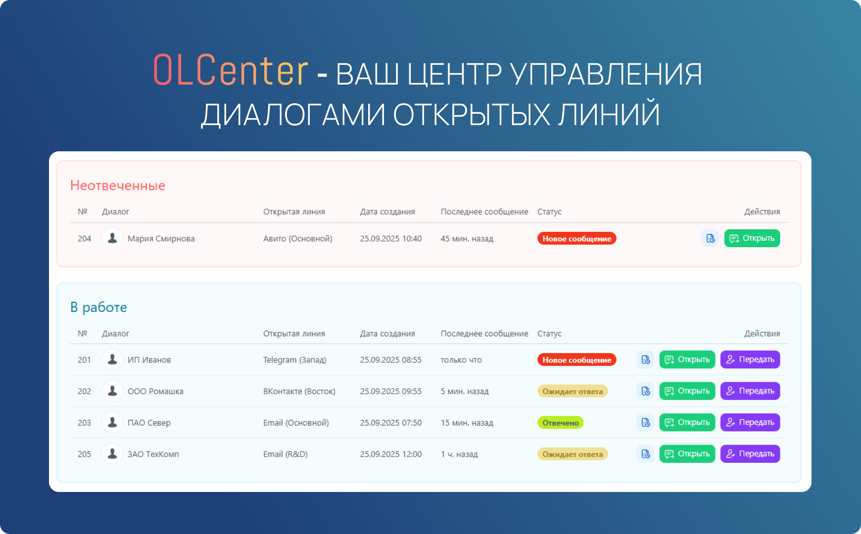 OLCenter — ваш центр управления диалогами открытых линий