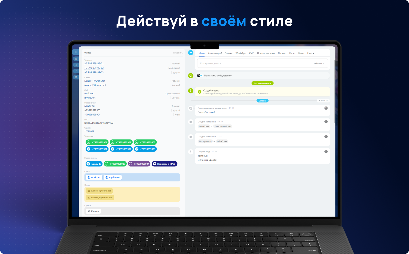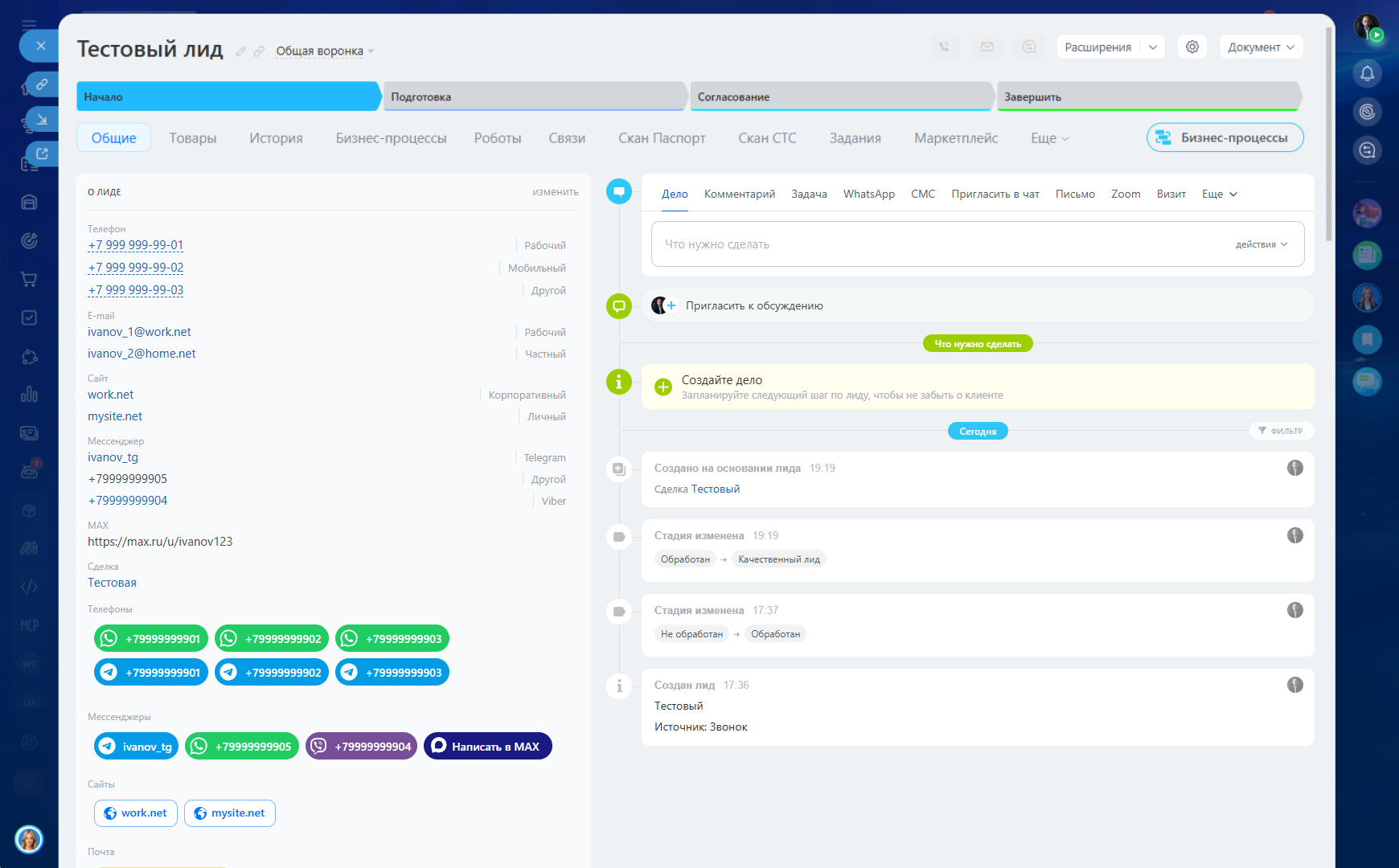 - Связаться с клиентом в один клик: Открывайте Telegram, WhatsApp или другой мессенджер прямо из карточки CRM. SmartButton автоматически подставит нужный номер и может добавить шаблон сообщения.