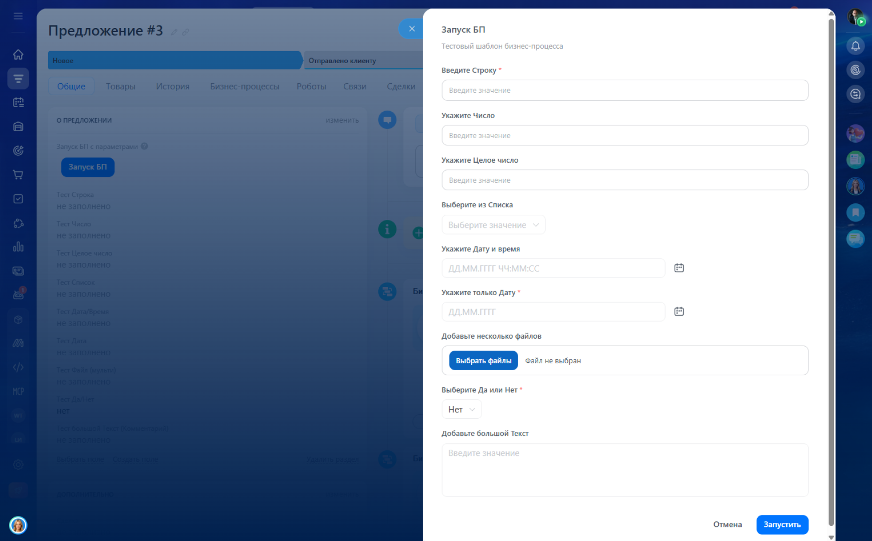 - Для работы со Смарт-процессами требуется тариф Профессиональный или выше.