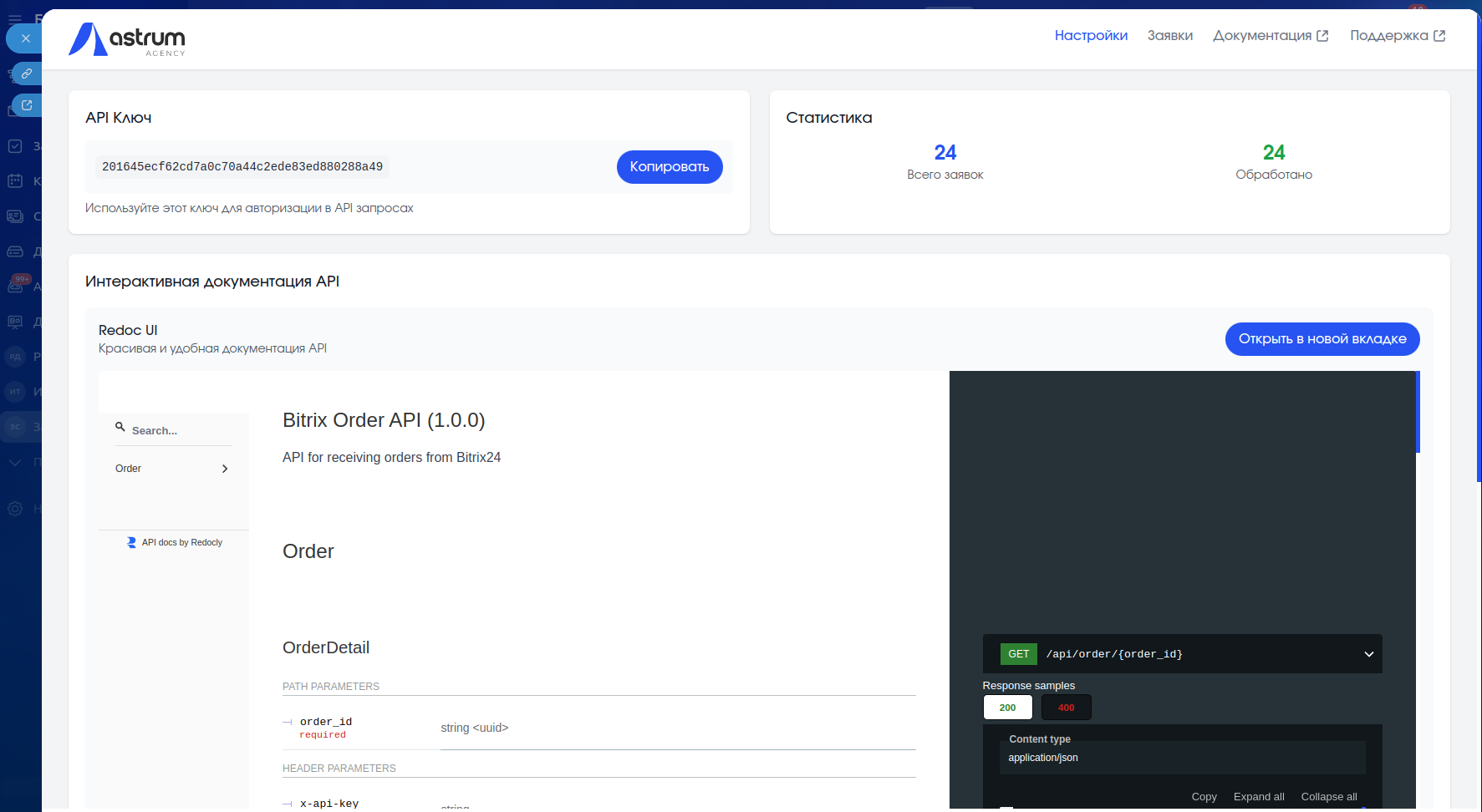 Приложение для автоматического приема заявок с сайтов и создания контактов, сделок и лидов в Битрикс24 через REST API.
