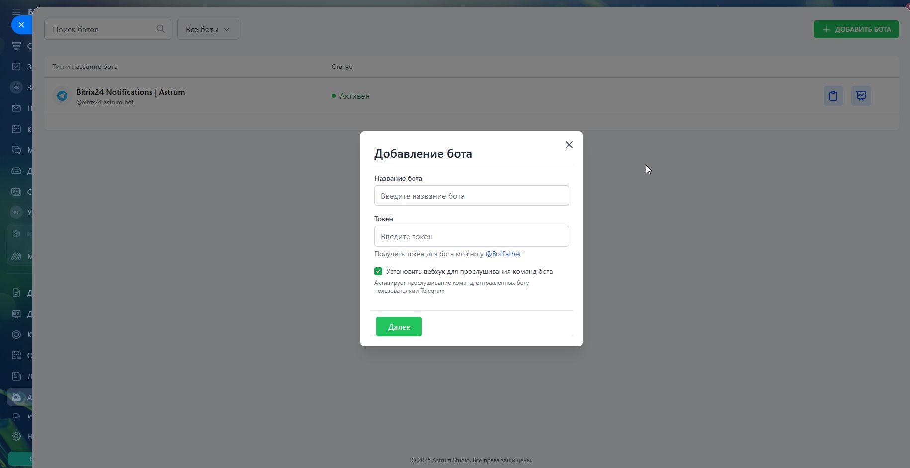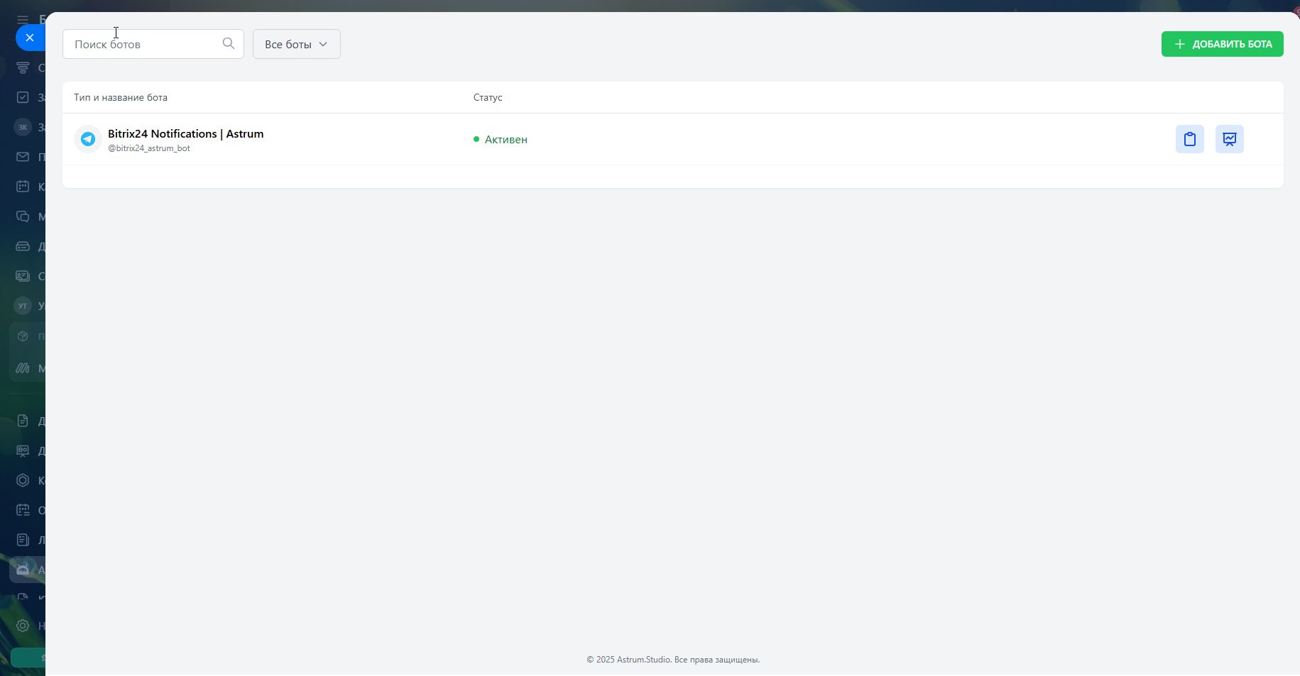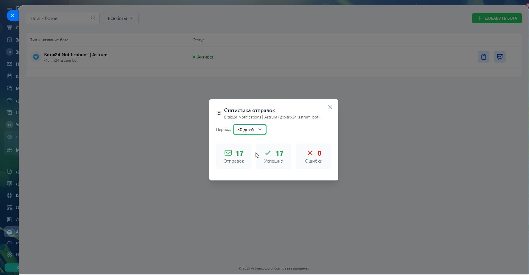 За счет этого Вы можете настроить разных ботов для разных типов уведомлений, чтобы сотрудники могли сразу понимать, от какого процесса пришло уведомление, а так же могли выборочно подписываться на нужных ботов или отключать звук у менее важных ботов.