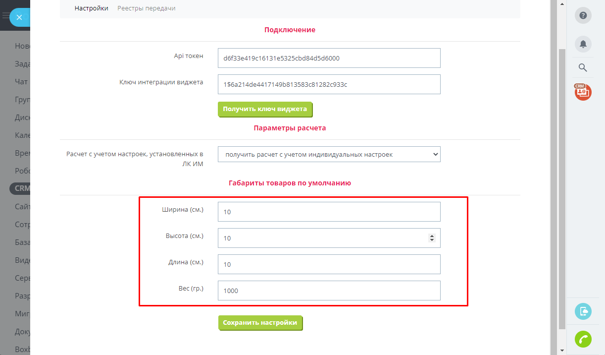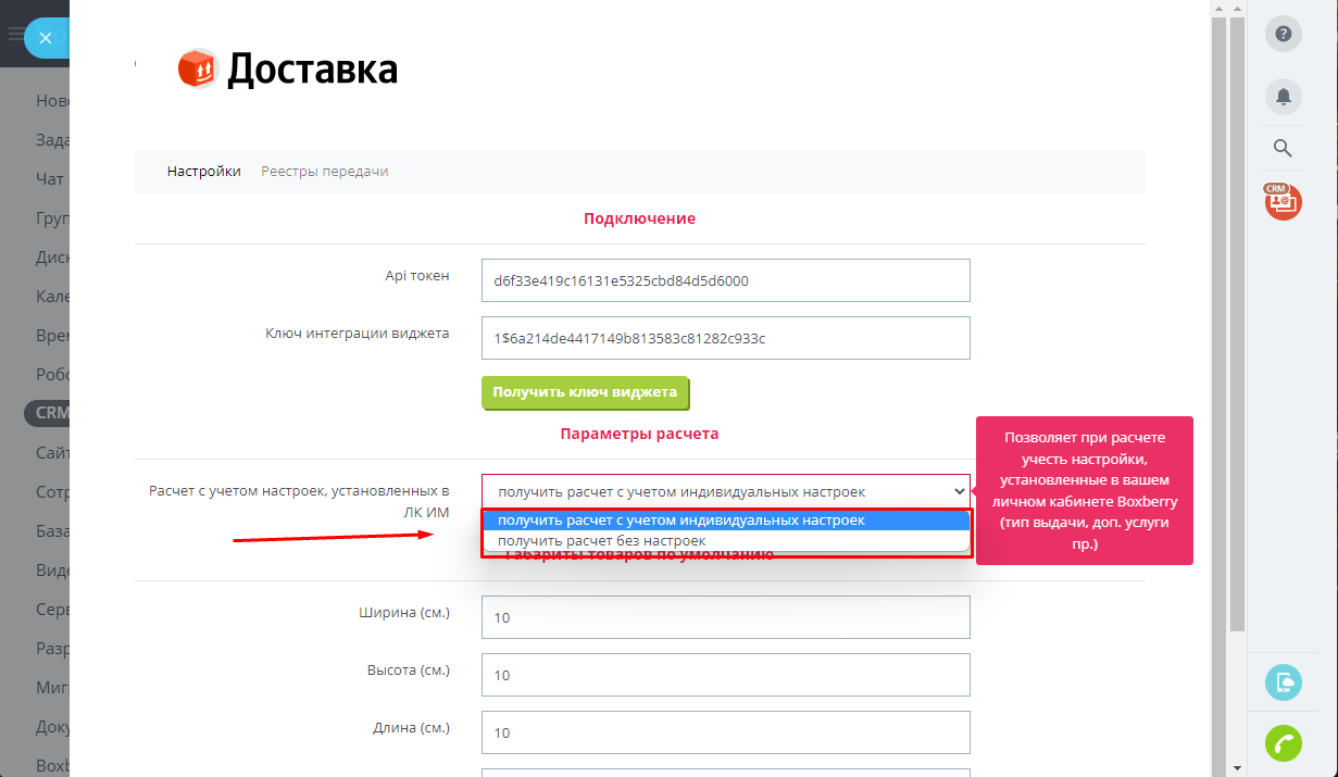 Просим обратить ваше внимание на то, что приложение осуществляет расчет и оформление отправлений только со страницы Сделки в CRM Битрикс24. Приложение не предназначено для функционала Битрикс24.Сайты и Битрикс24.Магазины.