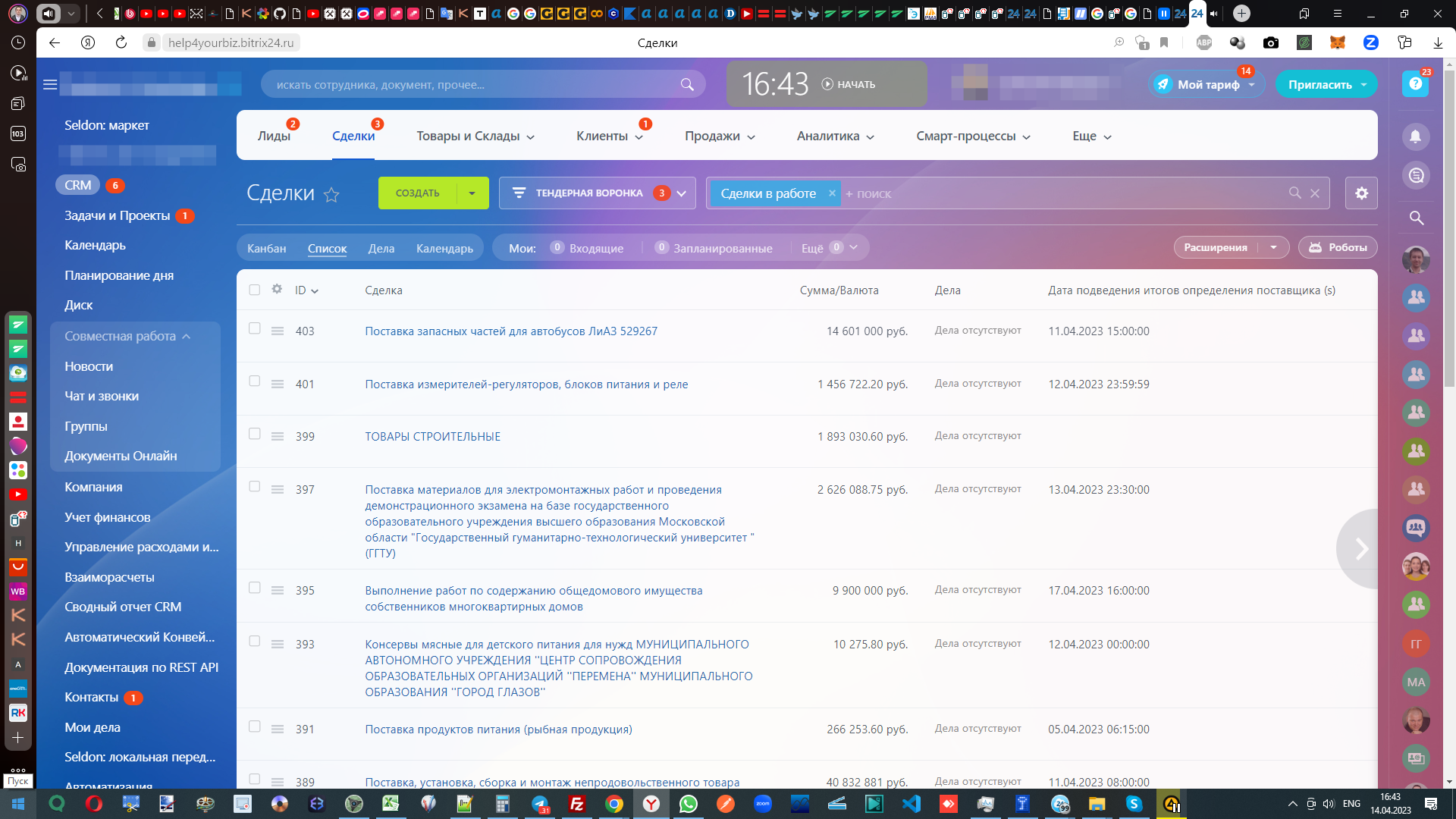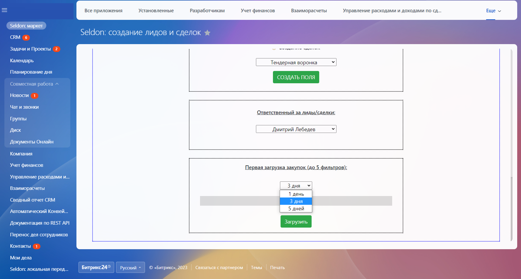 Приложение, передающее тендеры из системы Seldon в Битрикс24 в виде лидов и сделок.
