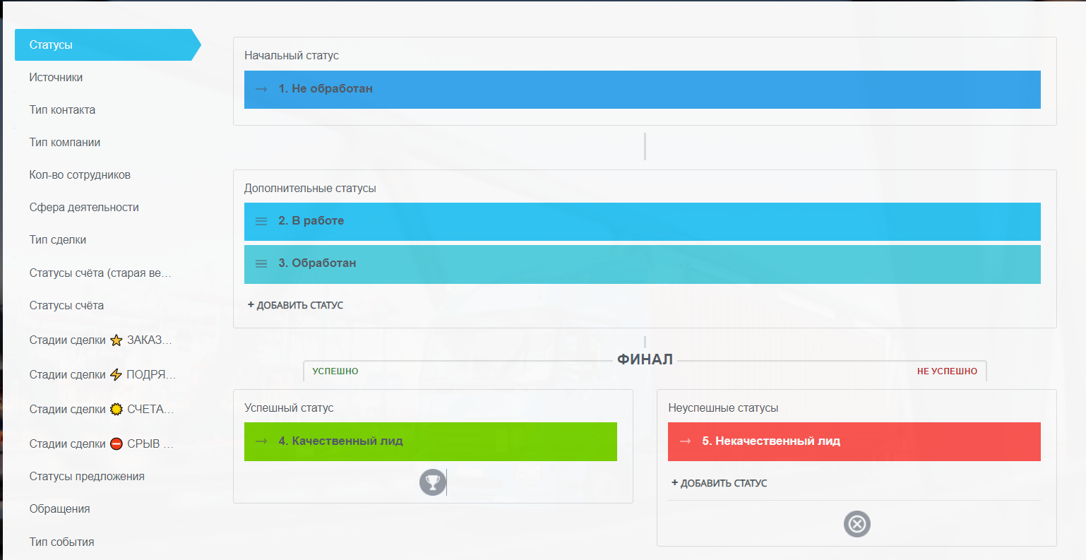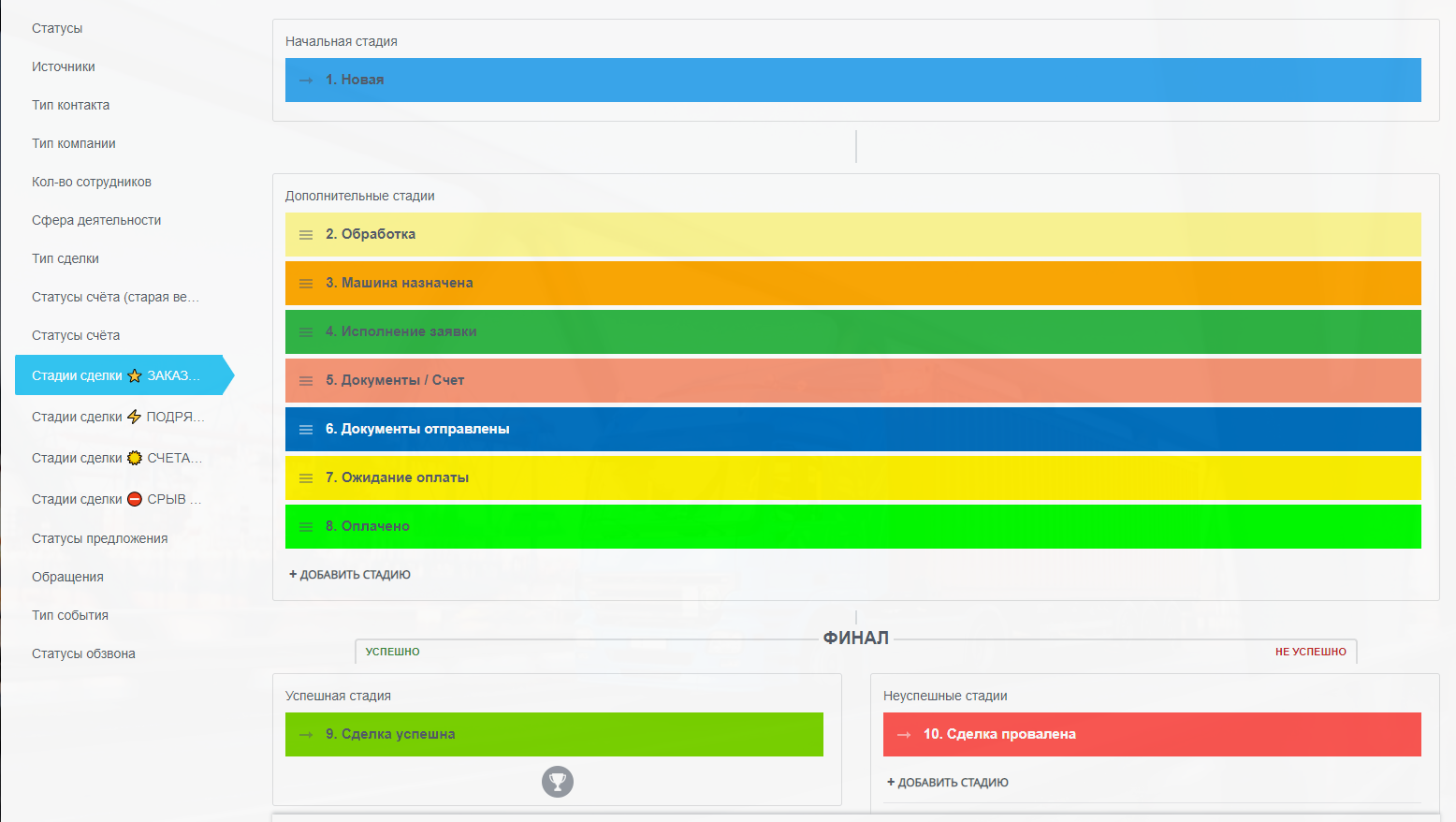 - Отдельное направление (воронка CRM) для переноса сделок при срыве на загрузке.