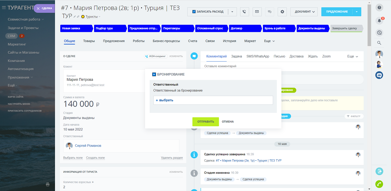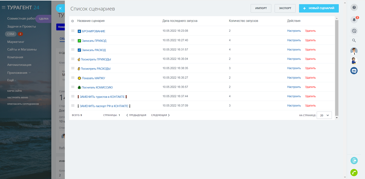 Умные сценарии для отраслевой CRM "Турагент24: CRM для турагентства".