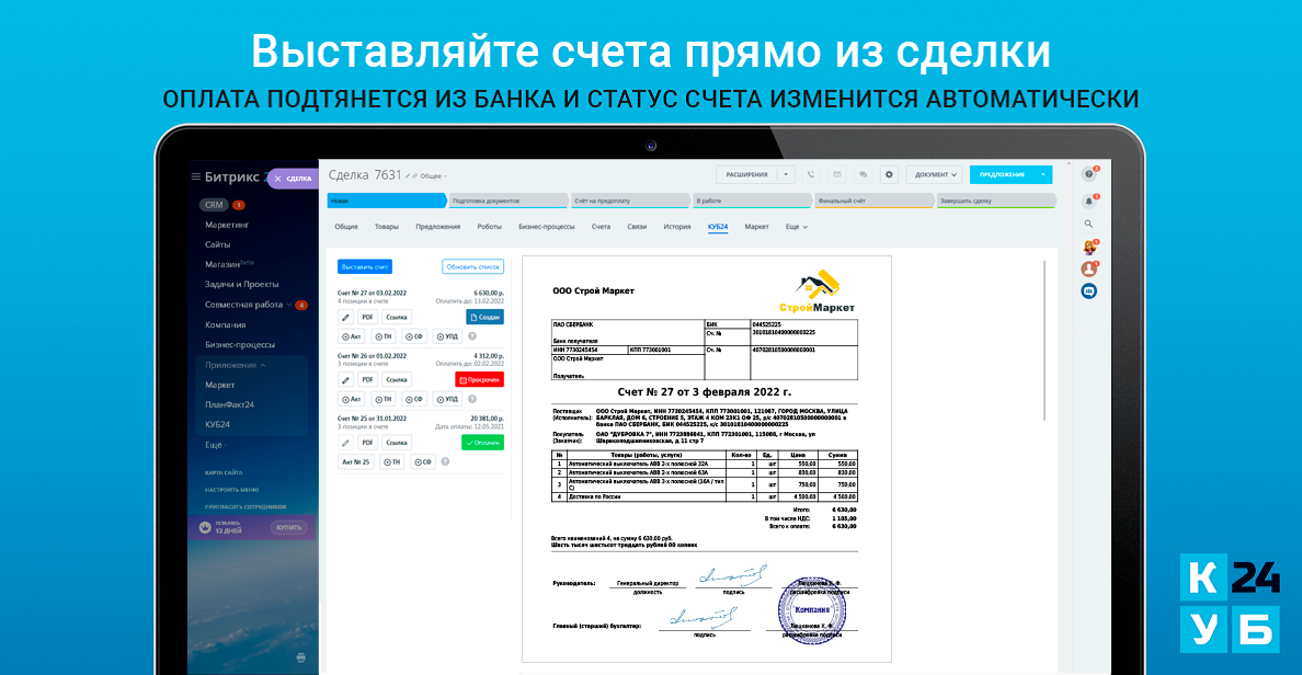 КУБ24.Выставление счетов – сервис для простого и быстрого выставления счетов и других документов для бизнеса.