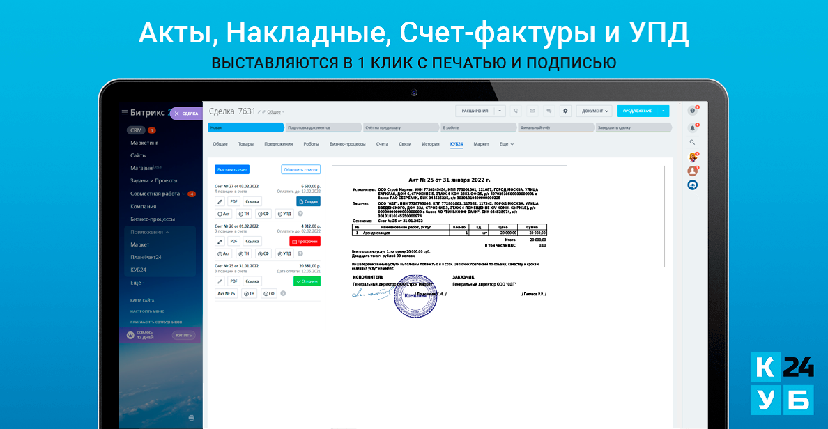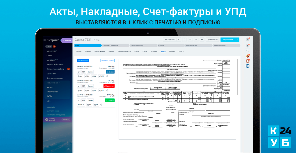 КУБ24 - сервис для простого и быстрого выставления счетов, актов, накладных, счет-фактур и УПД.