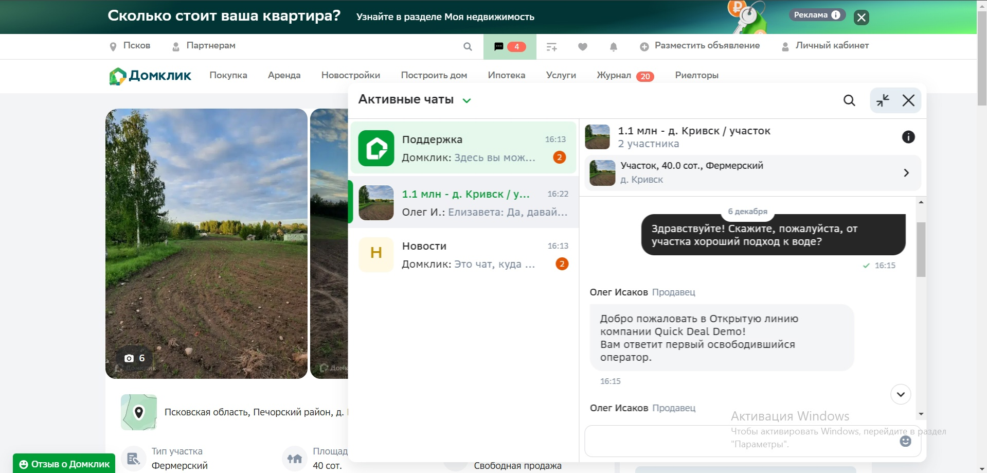 Главная фишка! Система автоматически определяет, по какому объявлению обратился клиент, и мгновенно переводит диалог на ответственного за этот объект агента.