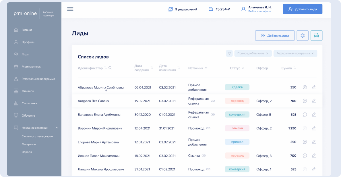 PRMOnline — всё для эффективной работы с партнёрами в одной платформе: автоматизация продаж, расчёт вознаграждений и прозрачное управление партнёрской сетью для устойчивого роста.