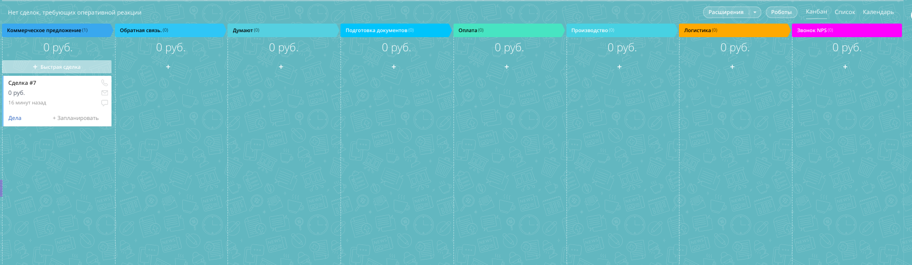 CRM ведет менеджера к результату, на каждом этапе напоминая ему о необходимости выполнения целевых действий.Для этого мы создали чек-листы для каждого из этапов воронки продаж, для всех воронок продаж.
