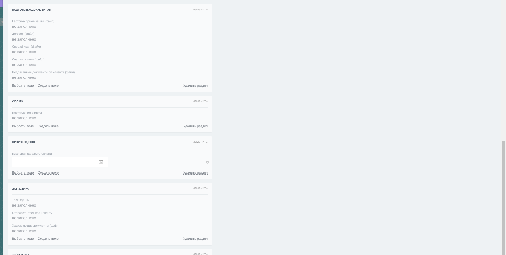 Добавлены поля и разделы в карточке сделки для удобства с работой системой.