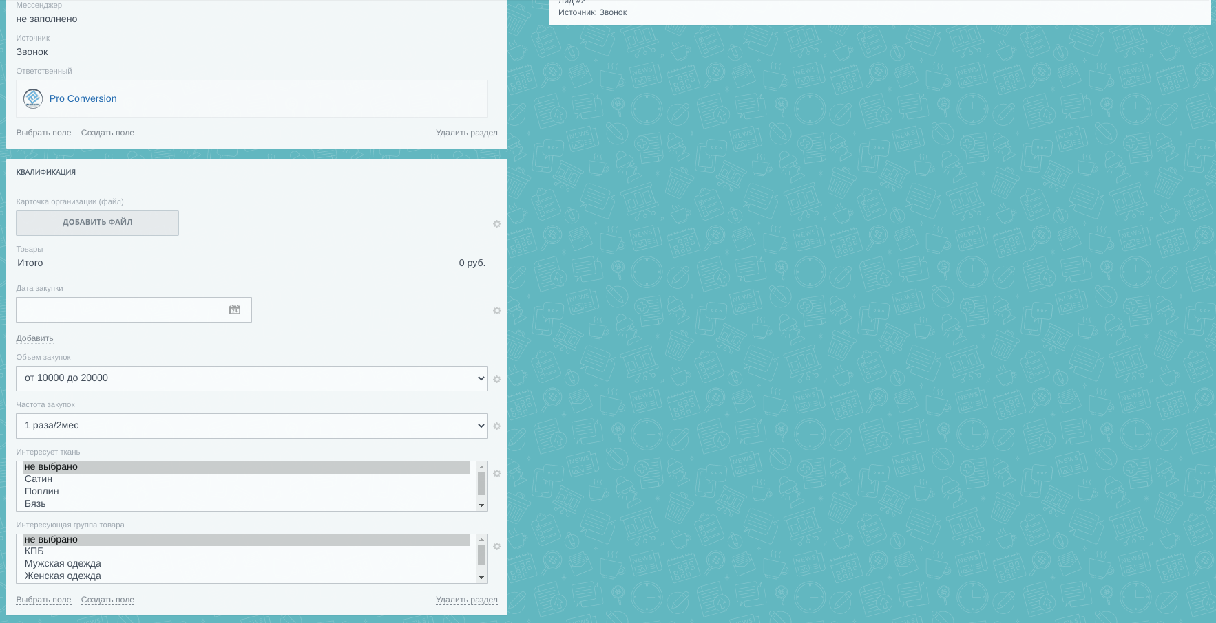 CRM для Текстильной Компании. [B2B, B2C, Тендеры, Холодный Обзвон, Интернет-магазин]
