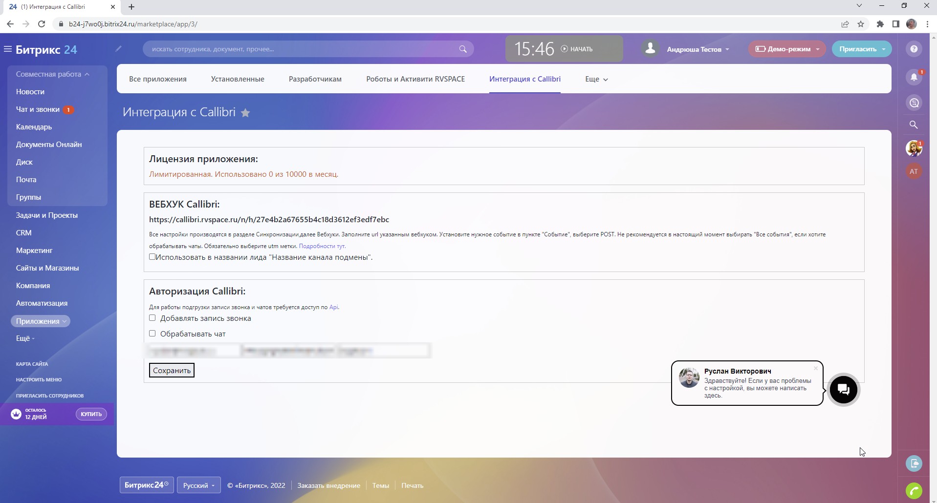 Появляется возможность отслеживать прямо в Битрикс24 эффективность работы Callibri и на основании этого формировать отчеты по его работе. Для Вас это выглядит легко и понятно, в виде поля ЛИД Callibri, в котором будет отображаться (ДА\НЕТ). Приложение распространяется по Подписке Битрикс24.Маркет Плюс и включает в себя лимитированное количество лидов (10000 в месяц). По вопросам работы приложения или увеличению лимита пишите в чат открытой линии. Мы постараемся ответить в кратчайшие сроки.