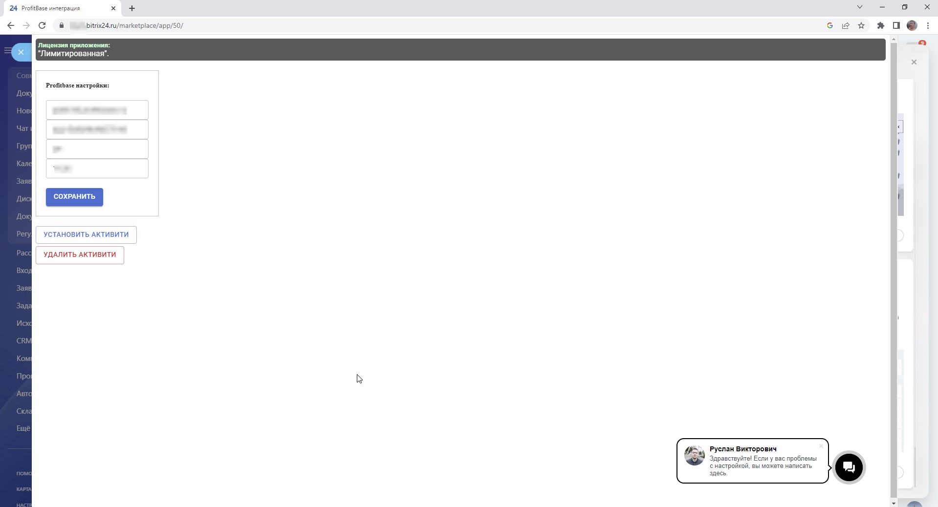 Для работы требуется любое оплаченное приложениe Proftibase и доступ по API.