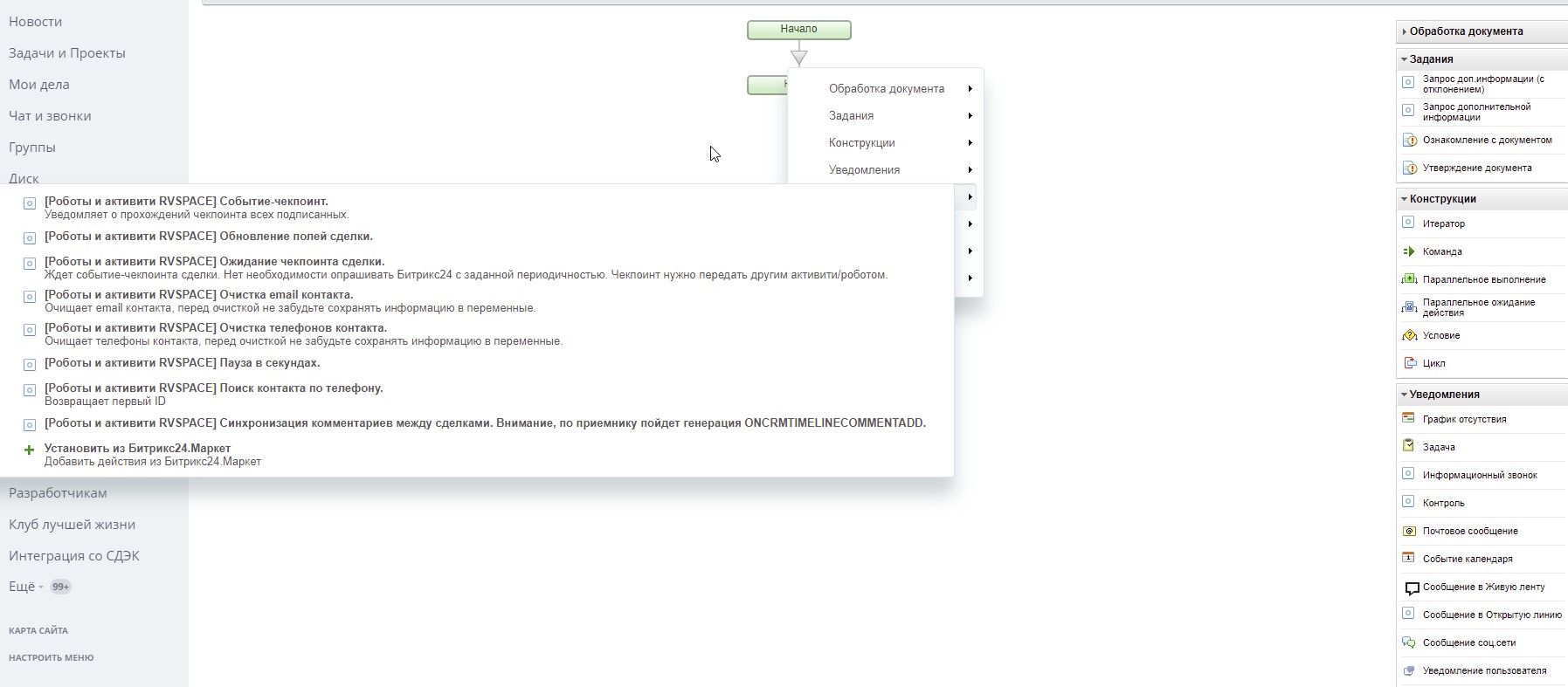2) Ожидание чекпоинта сделки. Ждет "Событие-чекпоинт" сделки. Теперь нет необходимости опрашивать Битрикс24 с заданной периодичностью, Активити дождется вашего "Чекпоинта"