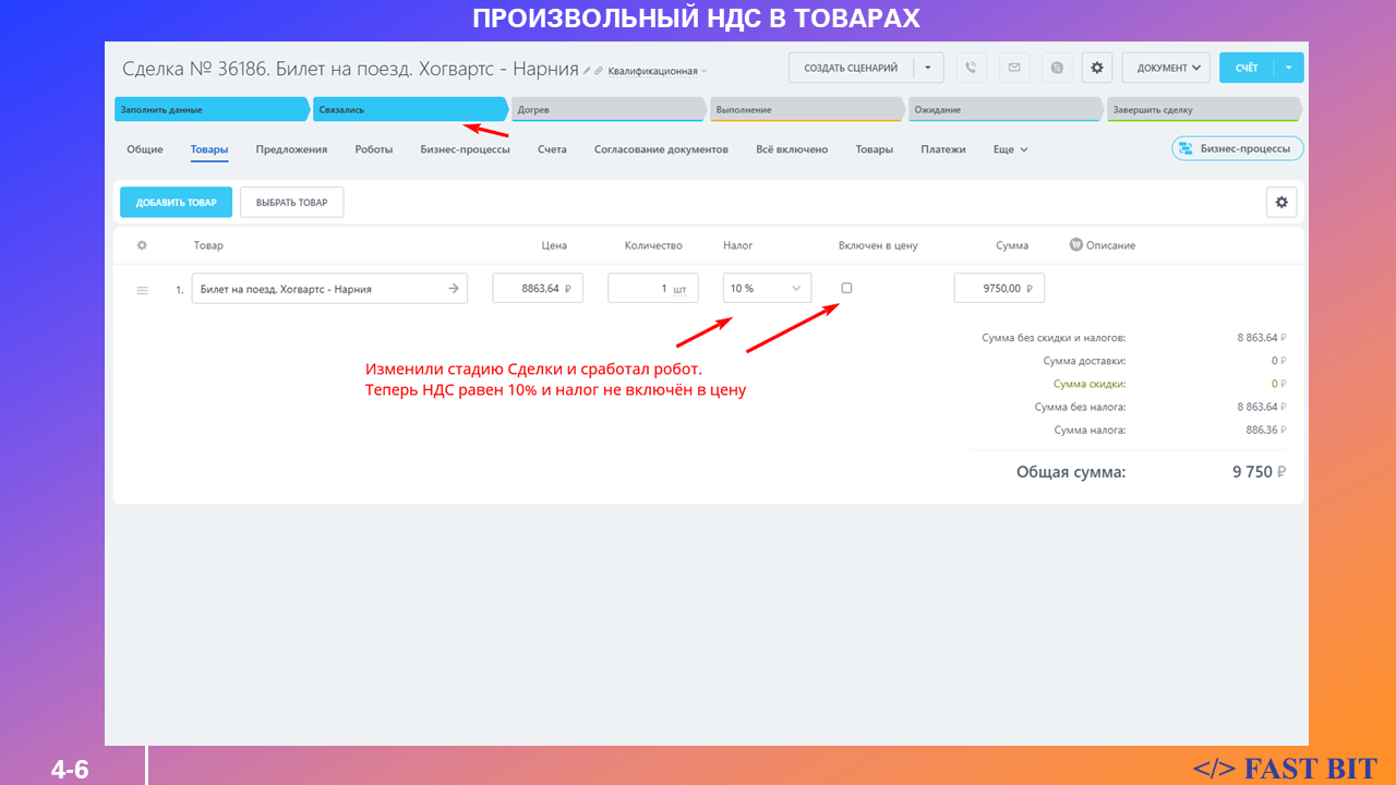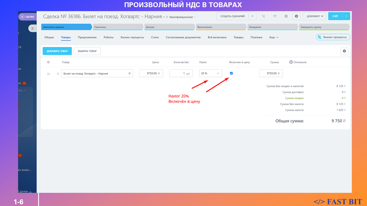 Ваш бизнес работает с товарами и услугами, у которых разные ставки НДС? Вам нужно автоматизировать изменение НДС в зависимости от условий сделки или этапа бизнес-процесса?