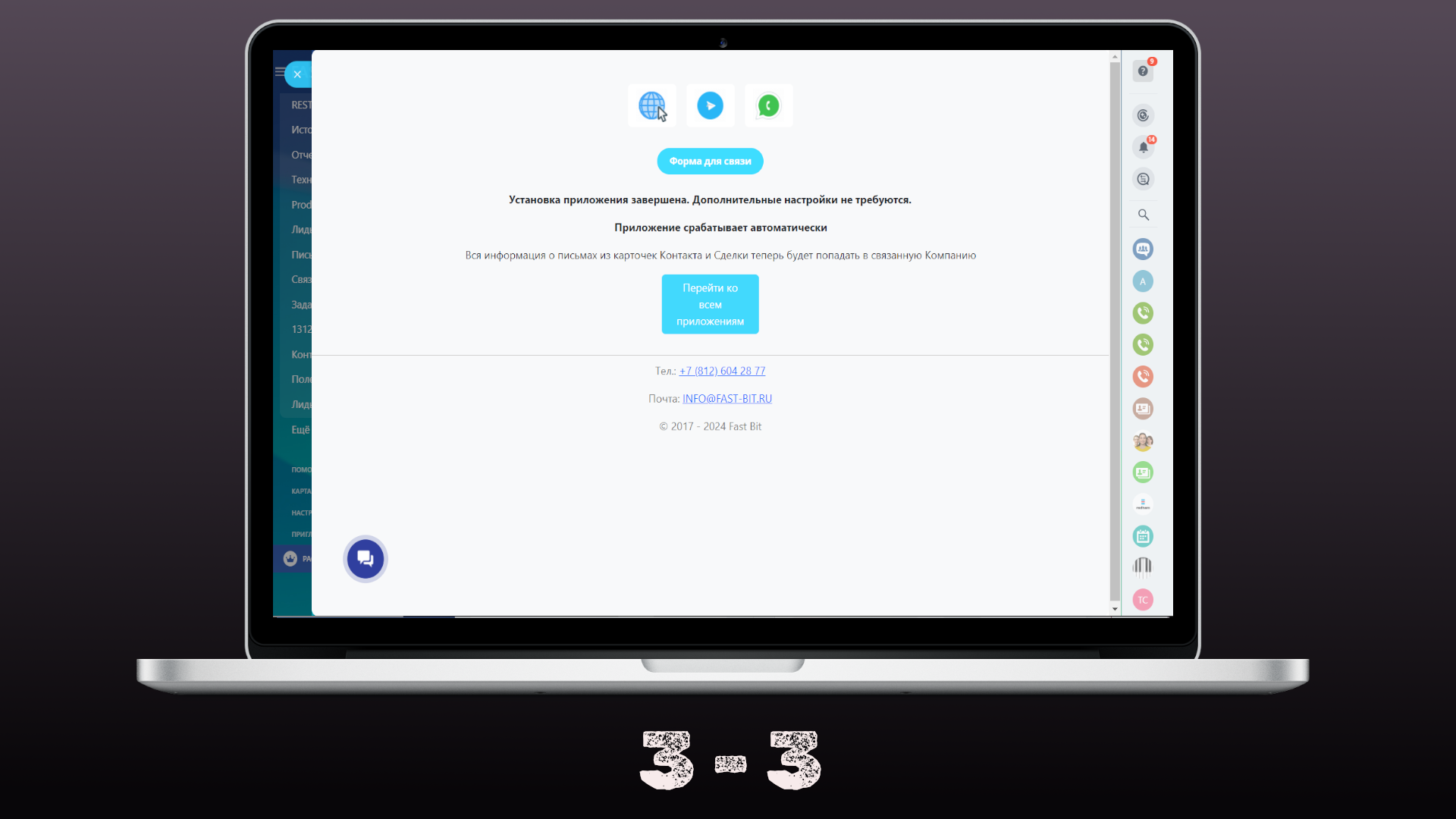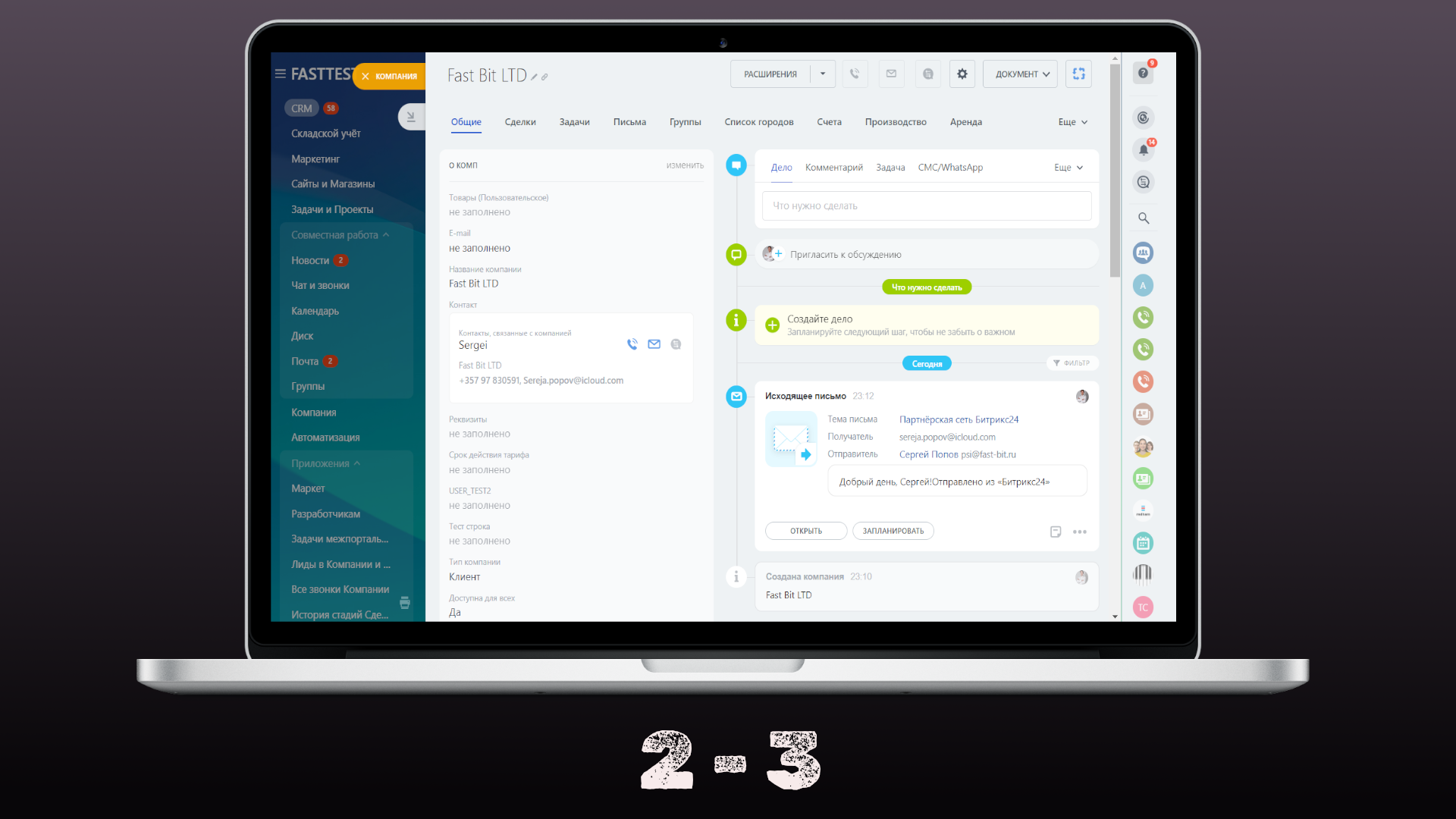 Прокидывает входящие и исходящие письма из карточек Контакта и Сделки в карточку Компании