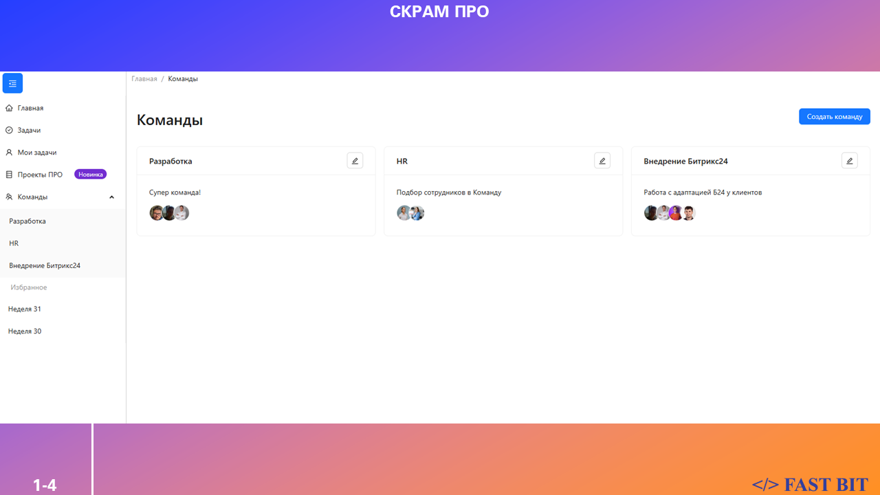 - Входит в подписку Fast Bit ПРО, которая открывает доступ не только к Скрам ПРО, но и к другим решениям серии ПРО: Проекты ПРО, Смарт-Процессы ПРО и другие.
