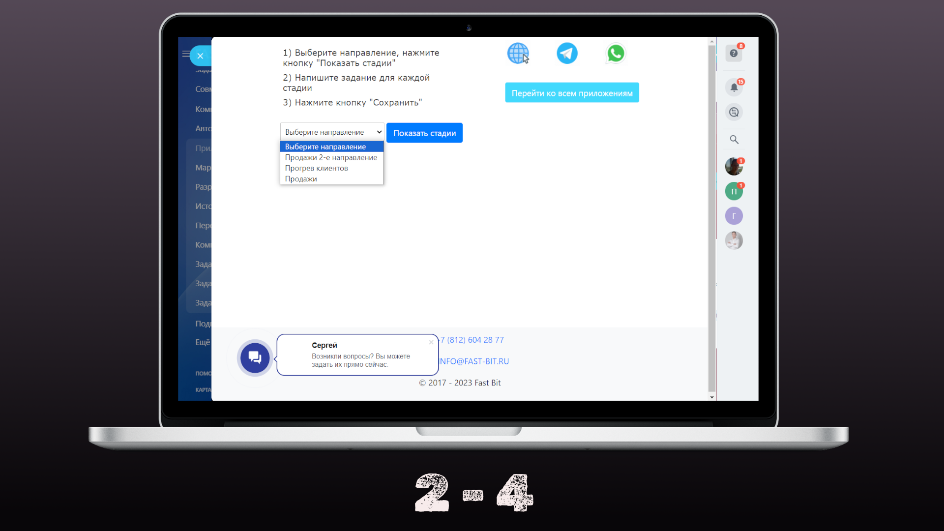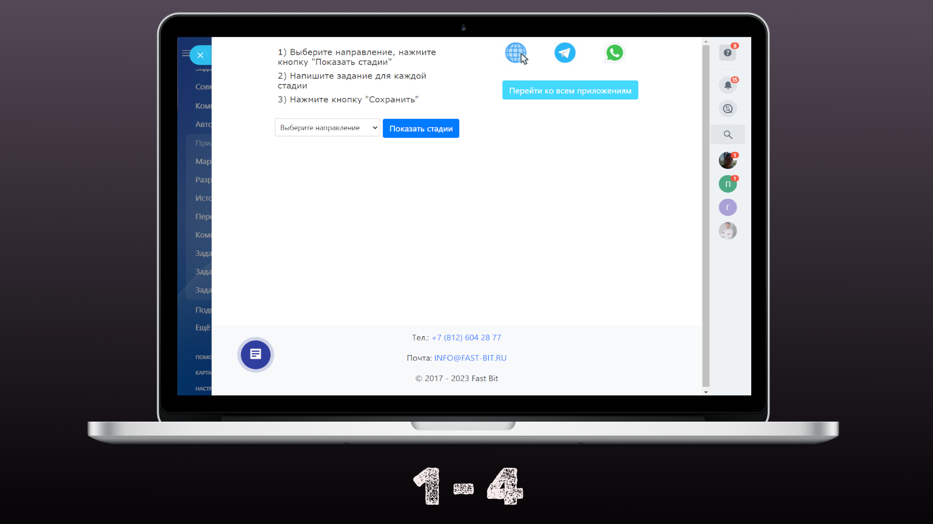 Приложение "Задания на стадиях" предоставляет руководителю возможность создавать и редактировать задания на разных стадиях воронки продаж, а менеджерам - удобно просматривать эти задания, чтобы всегда быть в курсе того, что нужно сделать на каждой стадии.