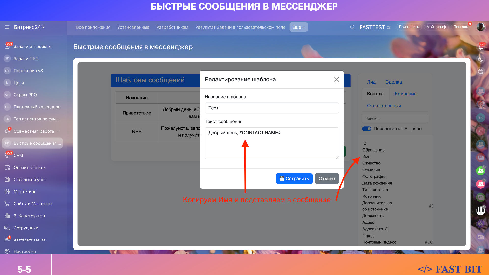 Автоматически подставить текст шаблона с персонализацией (например, по имени клиента),