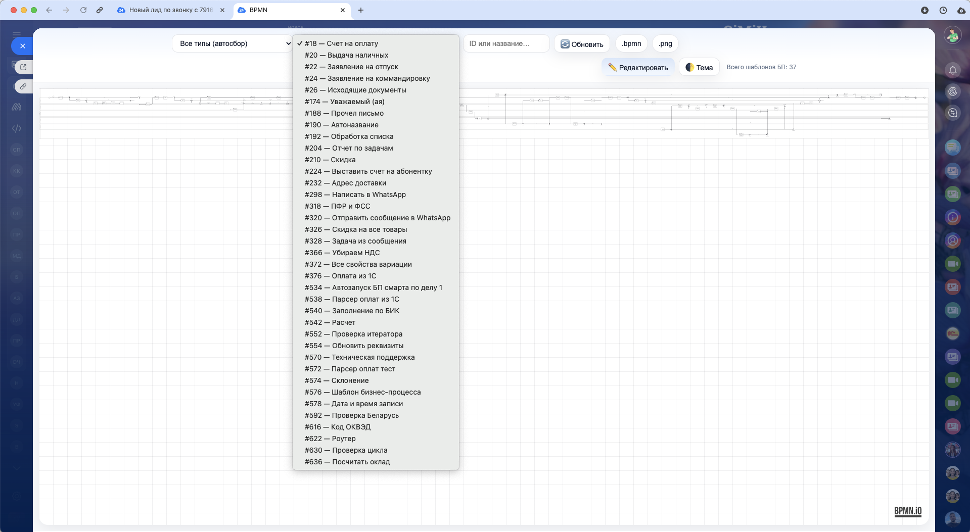 Нажмите «Скачать .bpmn», чтобы выгрузить схему, или «Редактировать шаблон», чтобы перейти в настройки БП.