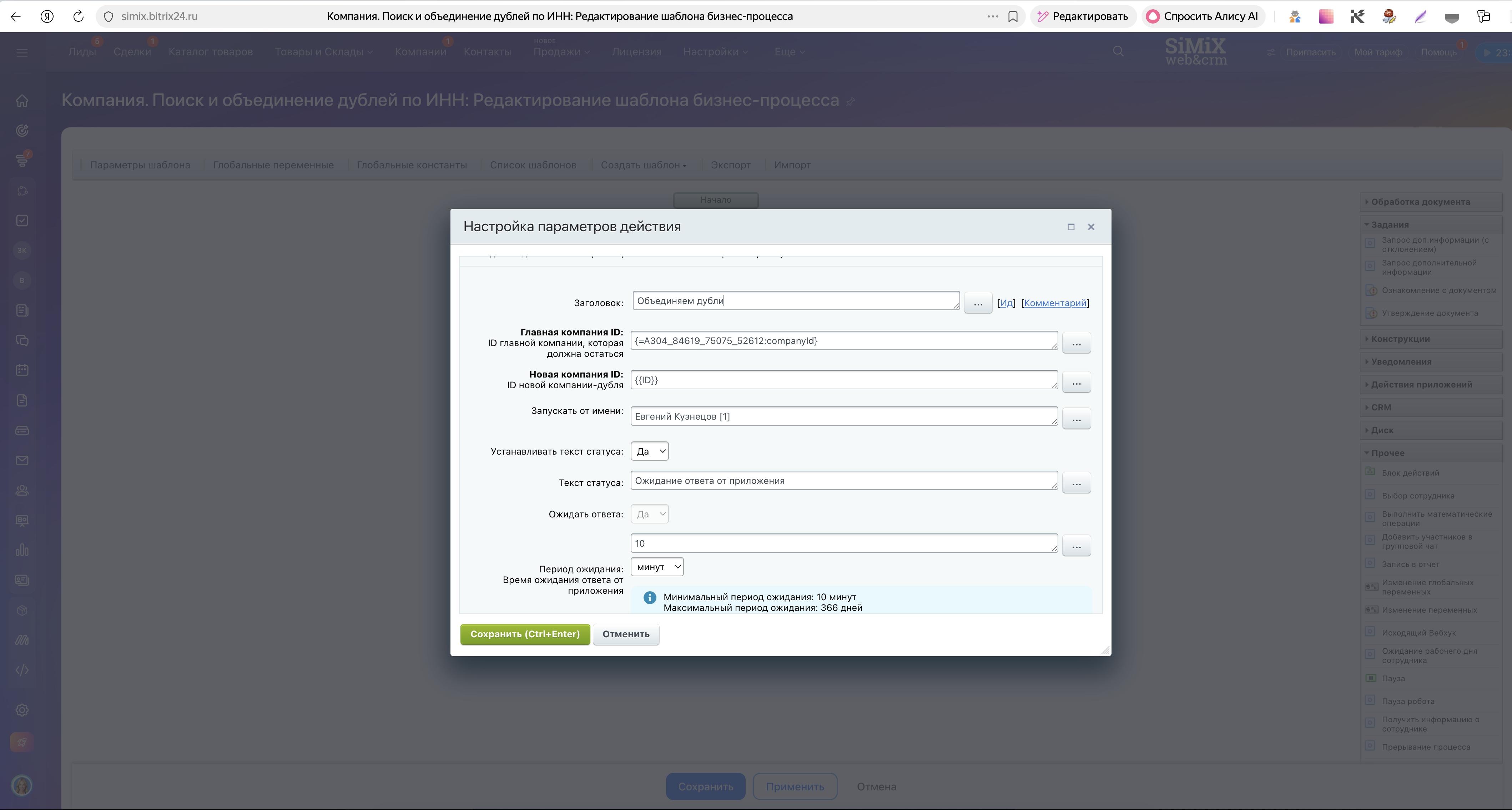 Автообъединение компаний в Битрикс24 прямо из бизнес-процесса