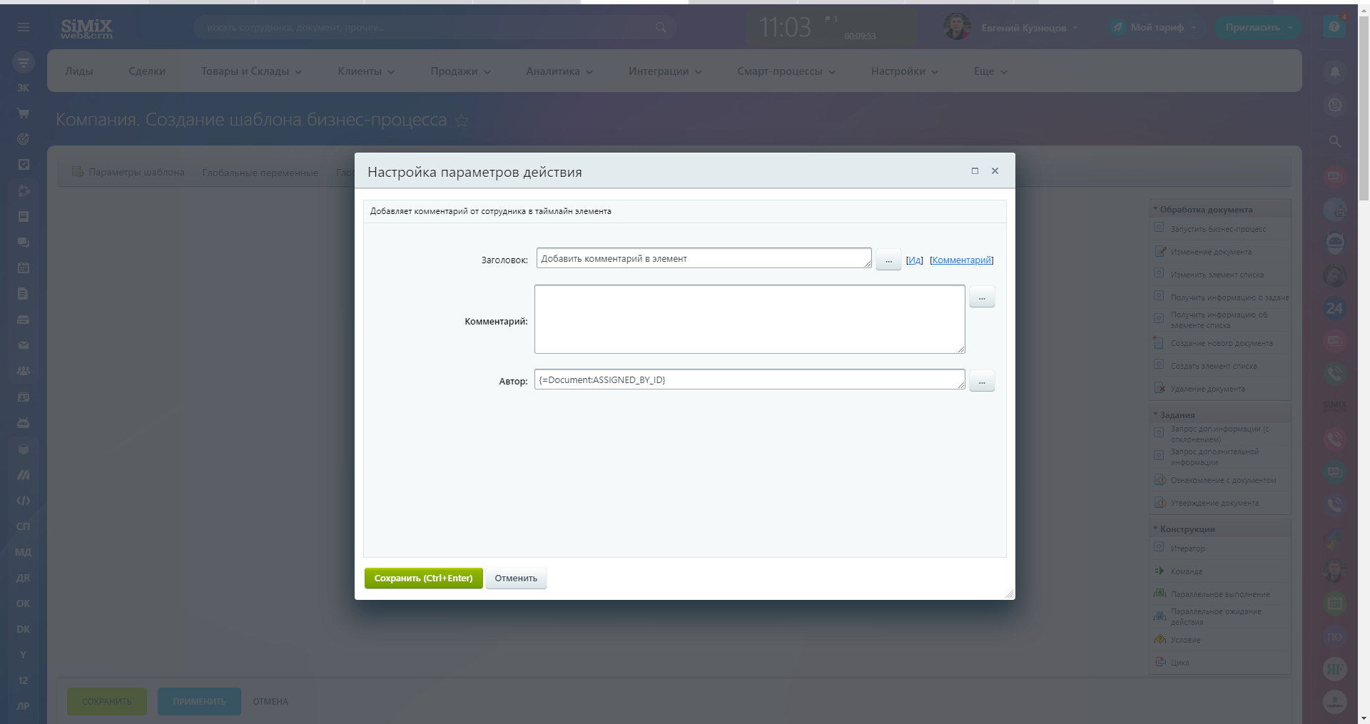 10. Бизнес-процесс отработал, в комментарий выведены все задачи выполненные для этой компании за указанный период из пункта 9.