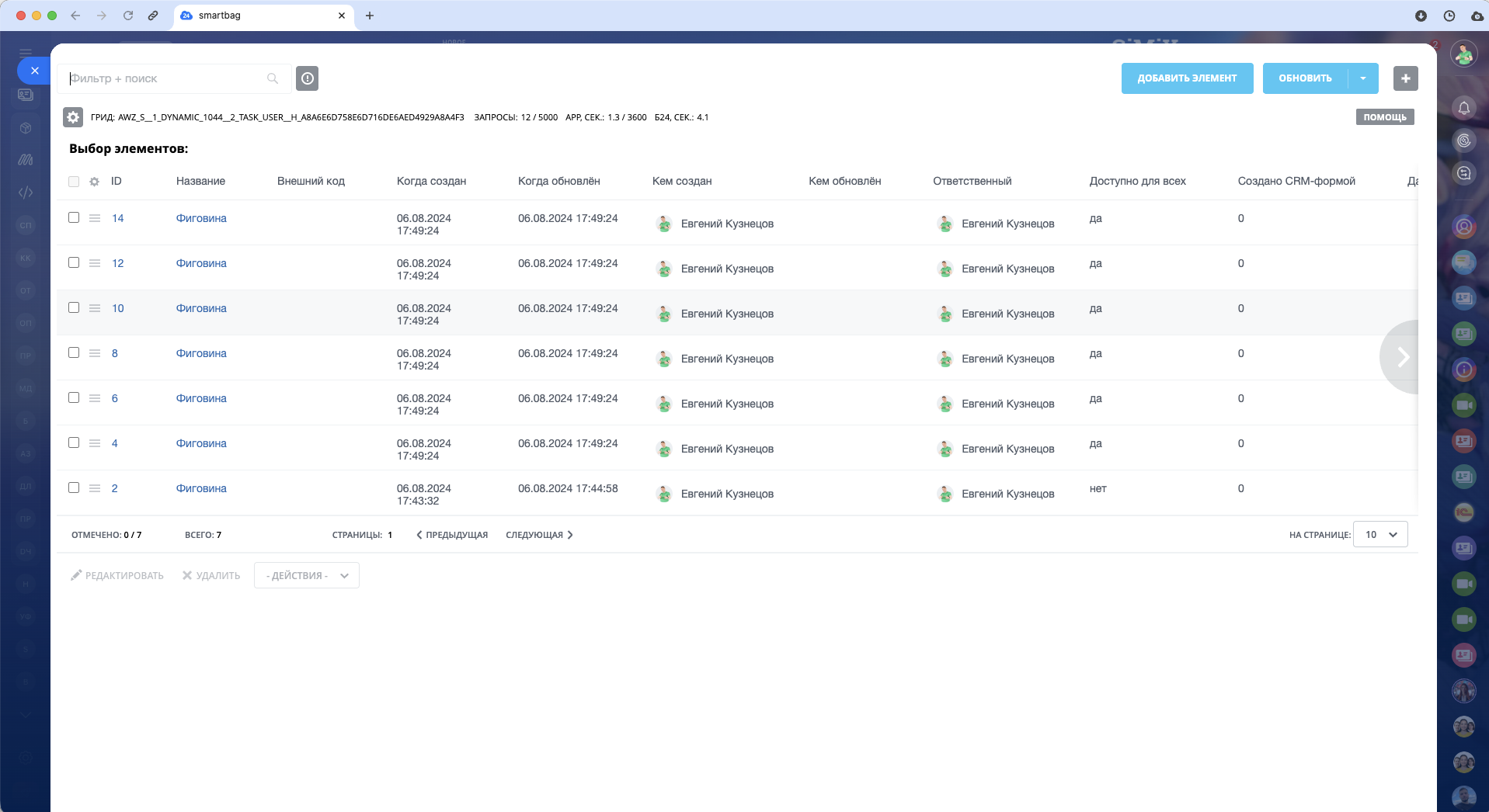 - Изменение ответственного (и любого другого поля) в элементах сущности по фильтру.