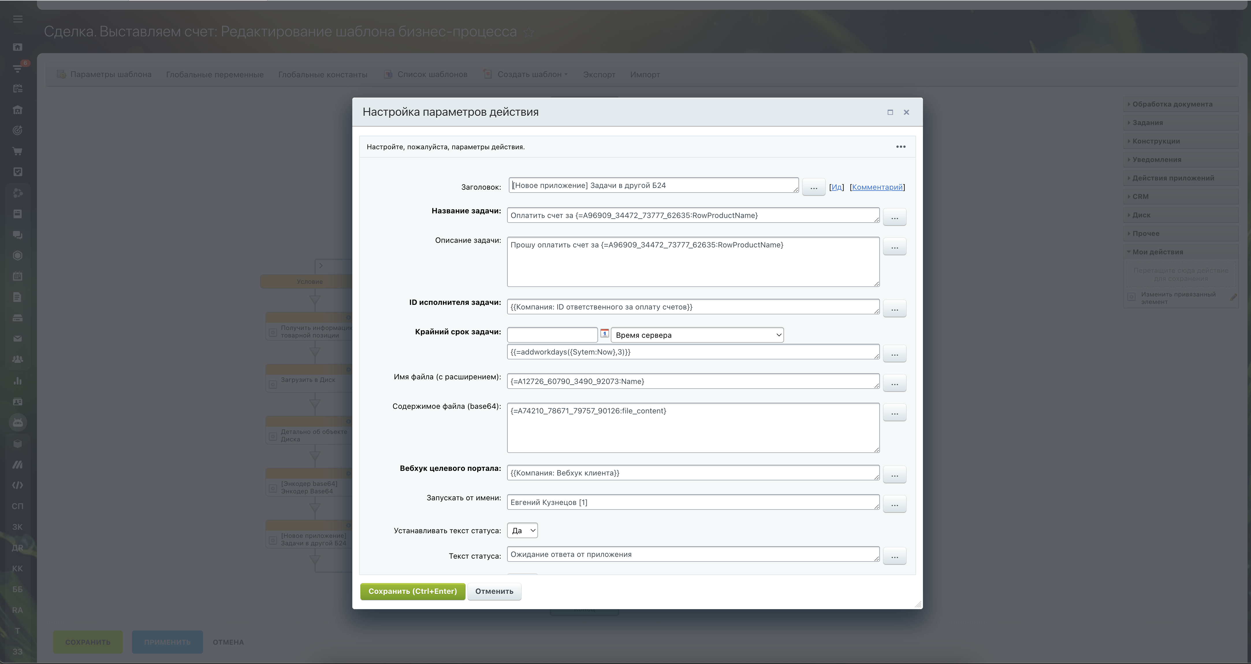 У вас есть периодические задачи на оплату счетов за лицензии, техническую поддержку? Наше активити поставит задачу на портал вашего клиента, а самое главное в задаче будет файл с вашим счетом.