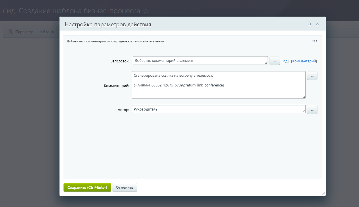 Ссылку на видеовстречу можно получить либо через встройку, либо через активити в бизнес-процессах.