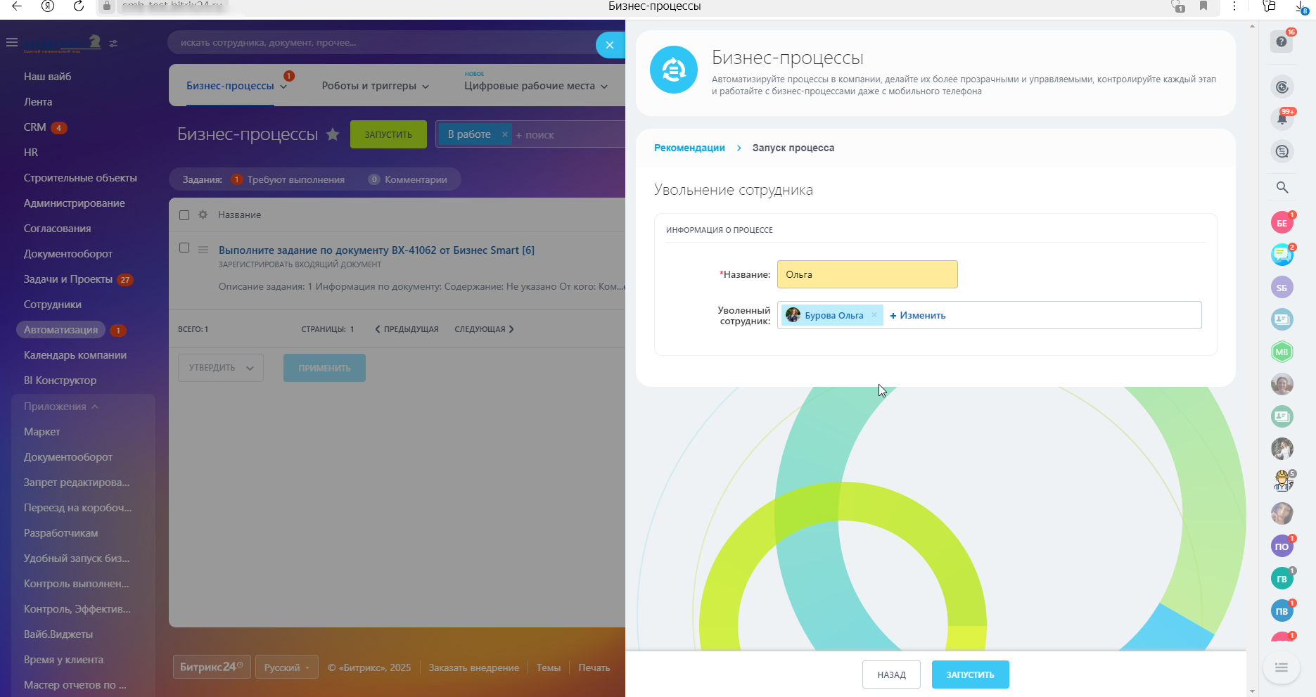 Приложение запускает процессы или вебхуки по событию увольнения сотрудника с портала Битрикс24