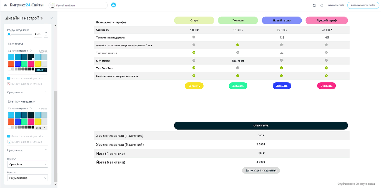 2. Сохранение созданных шаблонов: таблицы сохраняются в приложении и могут быть использованы в разных лендингах.