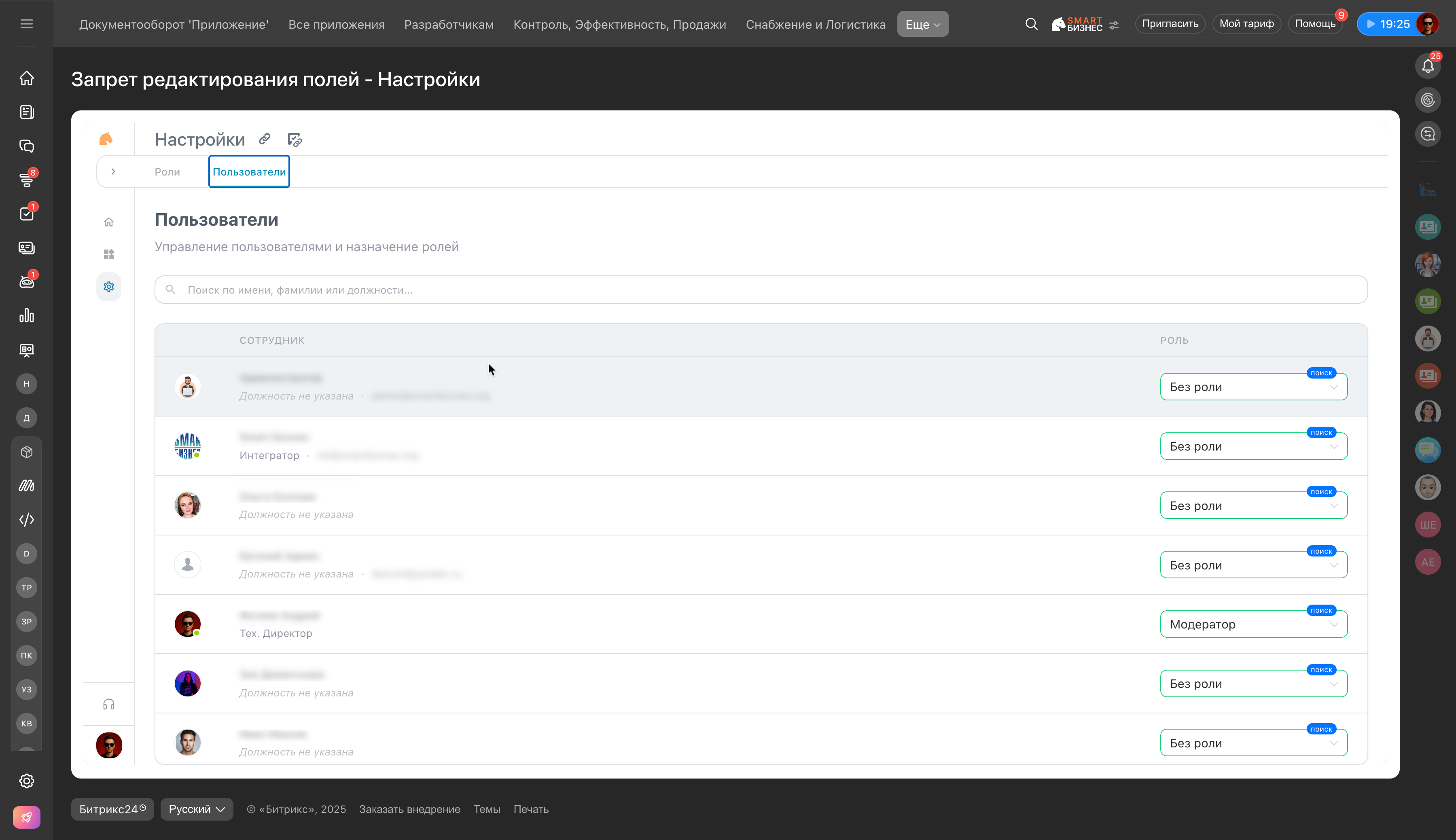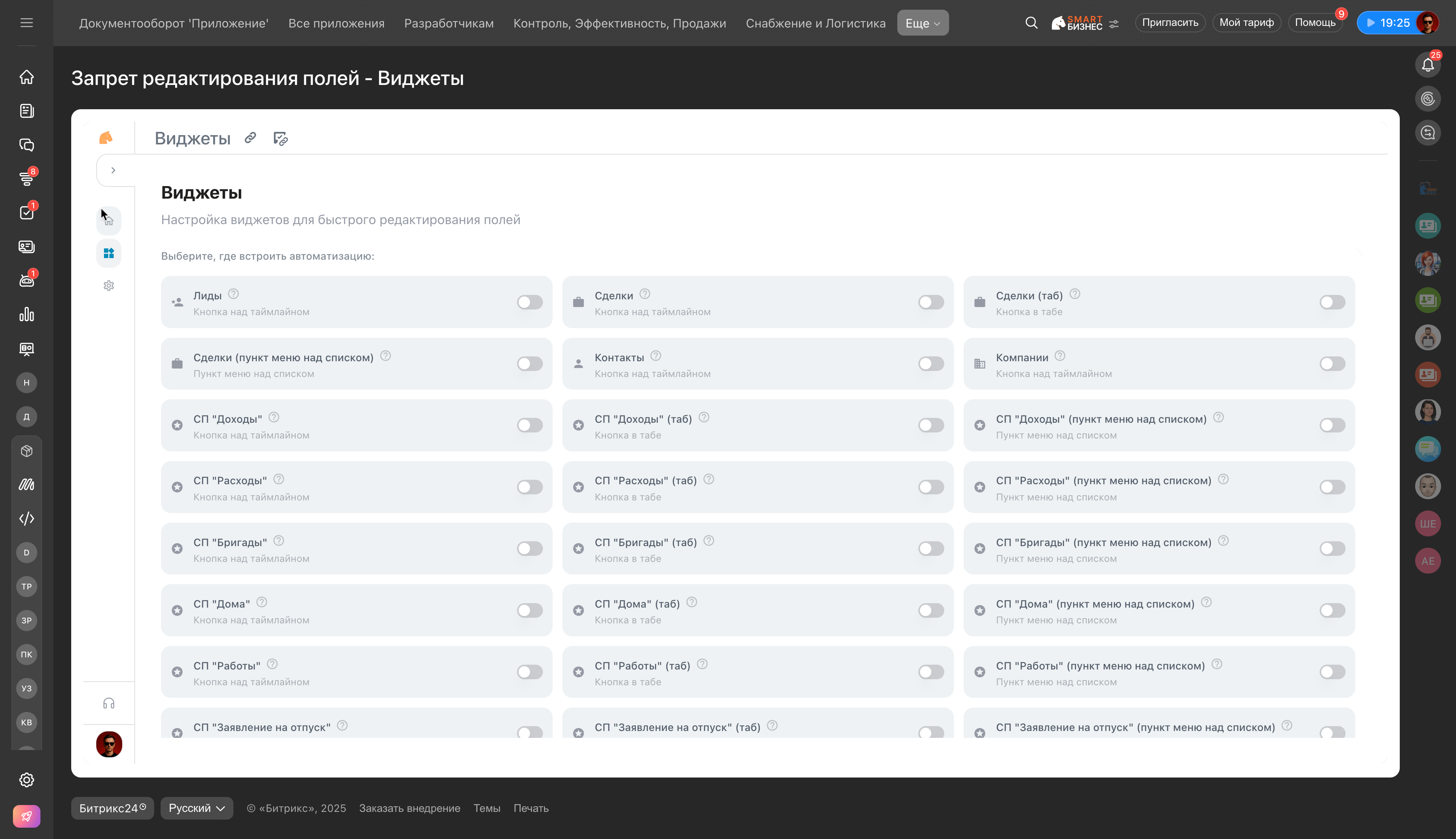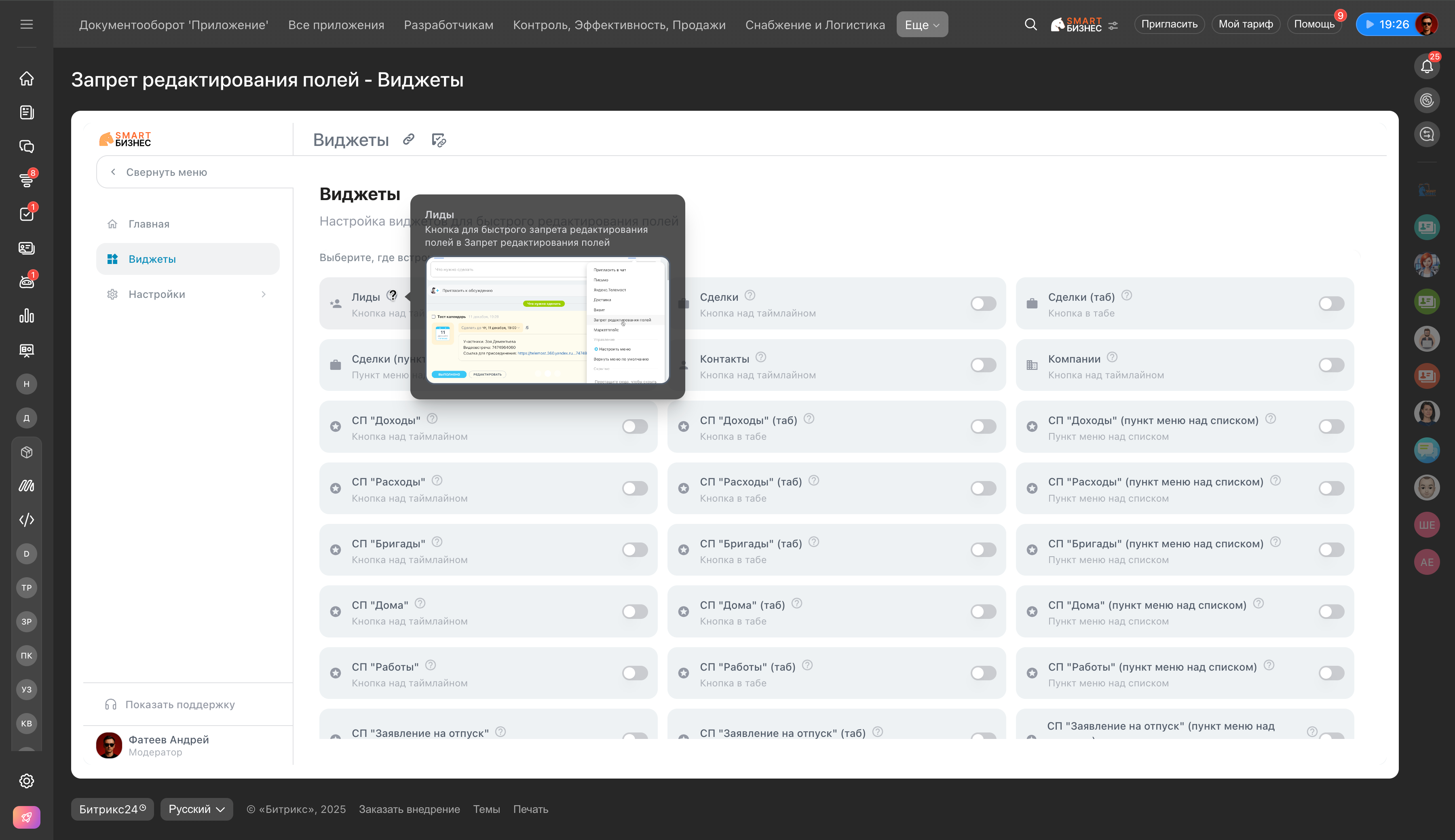 Приложение запрещает сотрудникам редактирование выбранных пользовательских полей в CRM: сделки, лиды, контакты, компании.