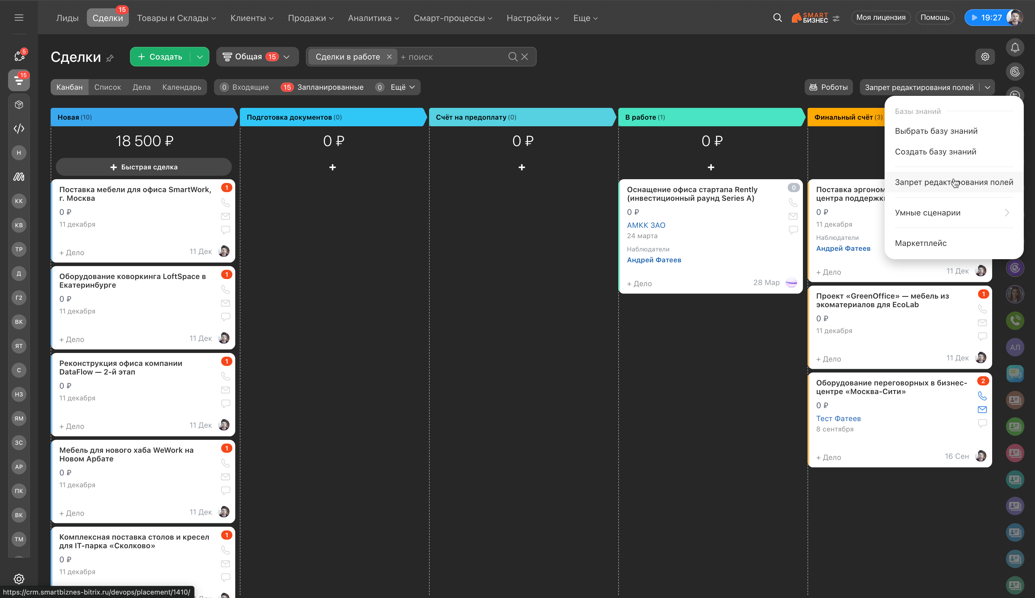 К сожалению, в рамках Bitrix24 действительно нет технической возможности реализовать дополнительные условия для запрета редактирования полей, так как это ограничение самой платформы. Тем не менее, мы всегда открыты для обратной связи: если у вас есть конкретные идеи или сценарии, которые вы хотели бы видеть в будущем, напишите нам напрямую на support@smartbiznes.org. Мы обязательно передадим ваши пожелания отделу разработки для анализа и рассмотрения.