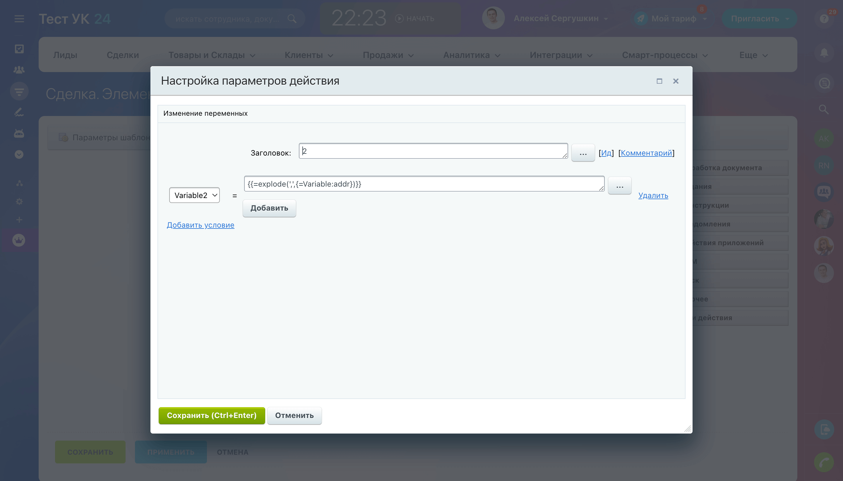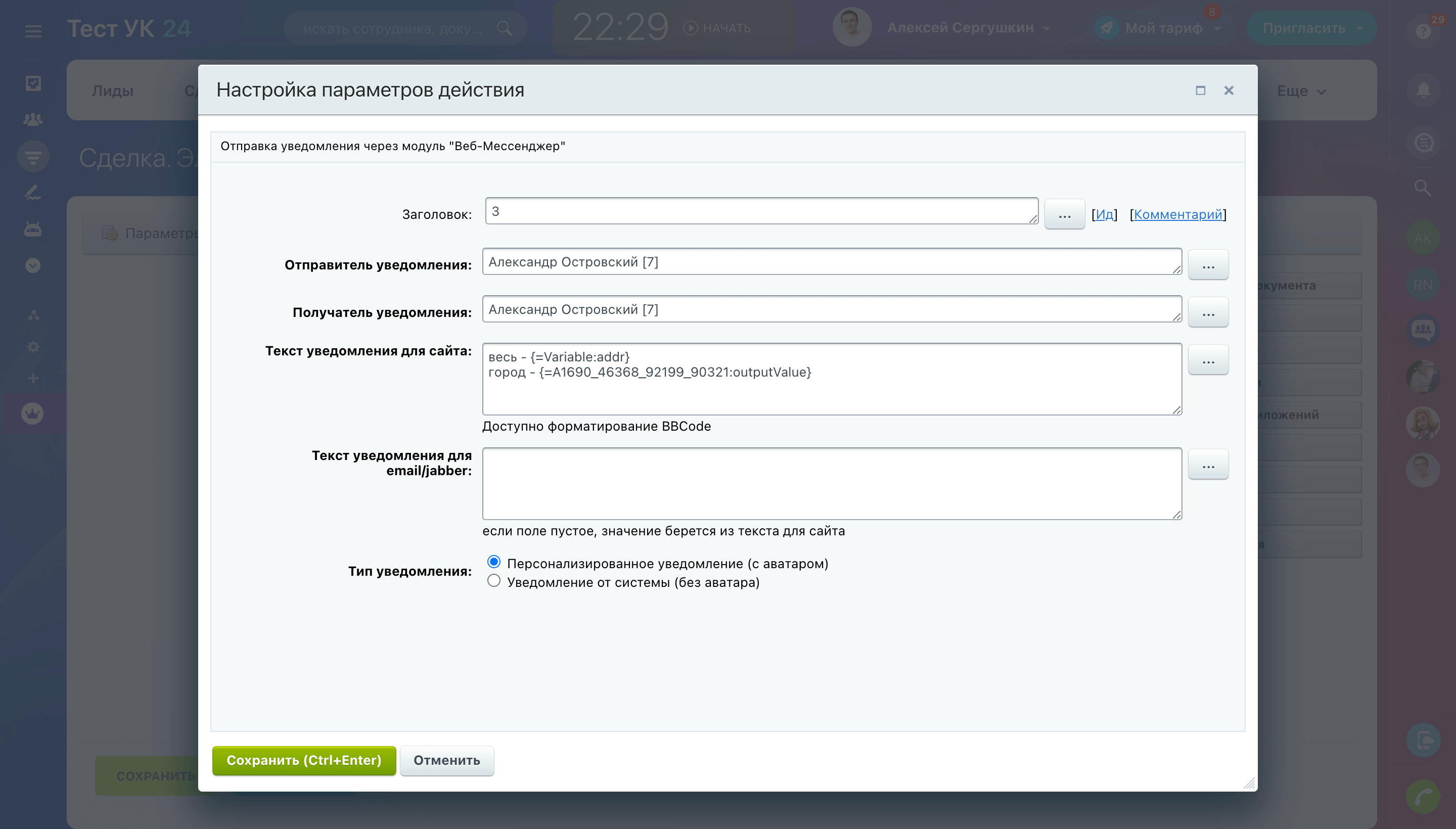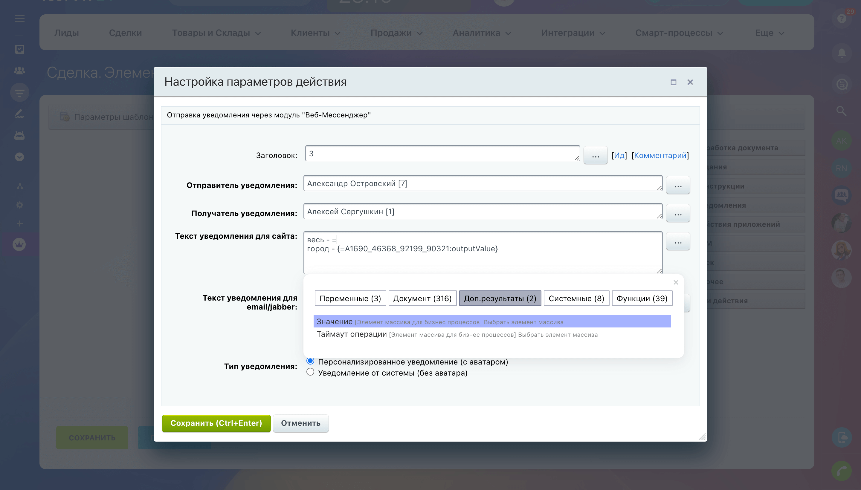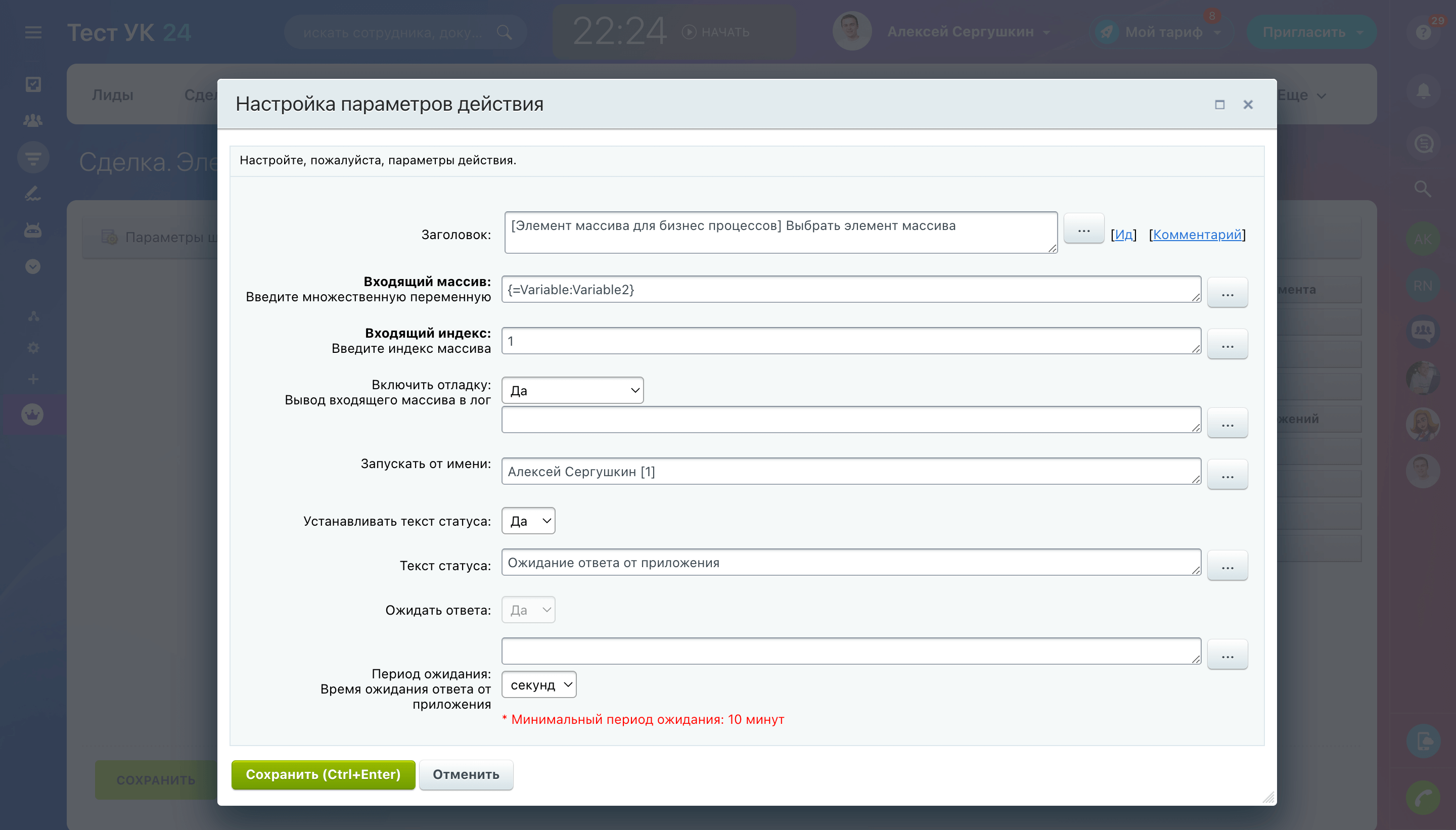 Запустим наш бизнес-процесс на сделке, а в данном примере мы делали бизнес-процесс именно на сделке, и вот что у нас получилось.