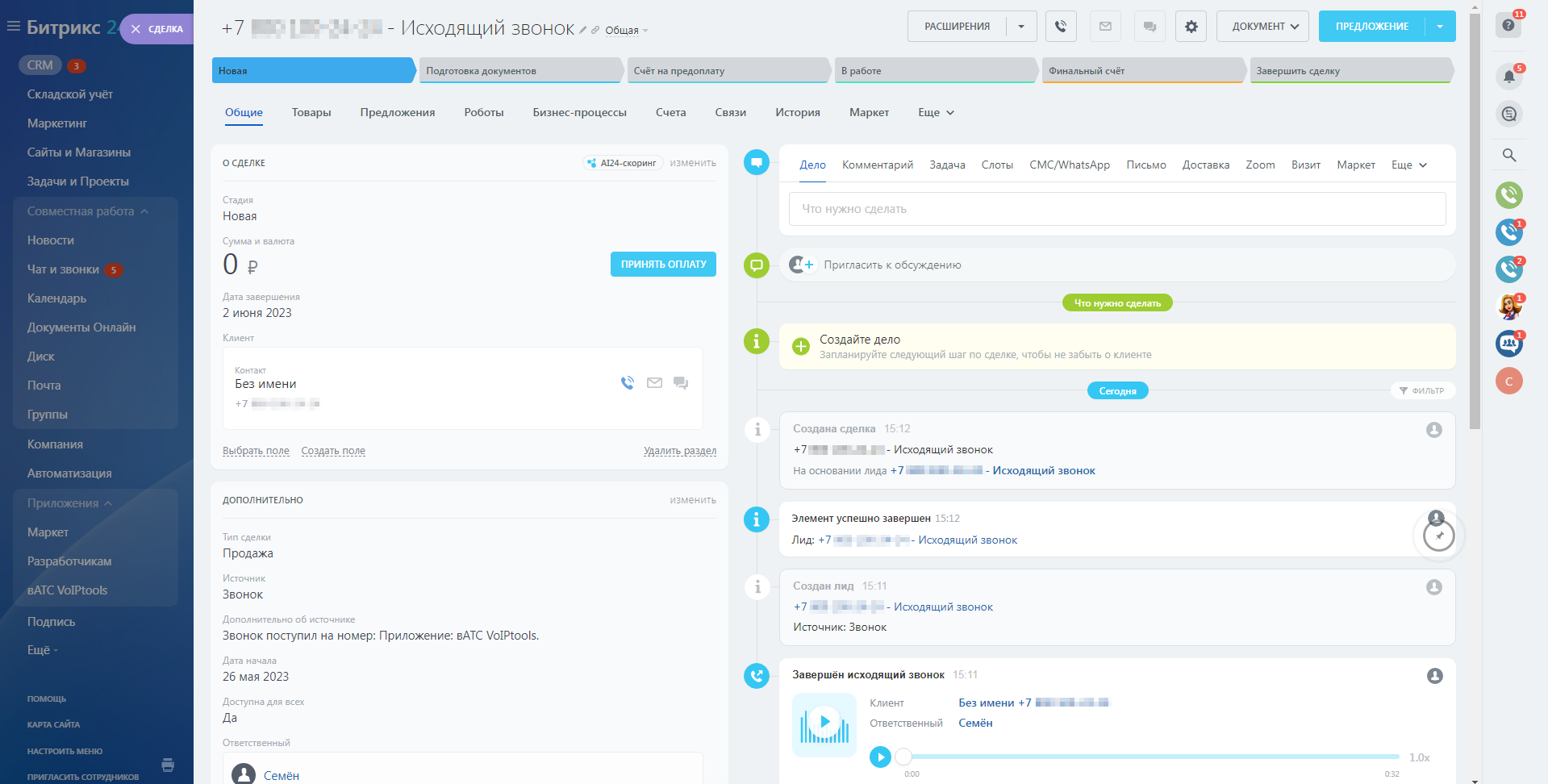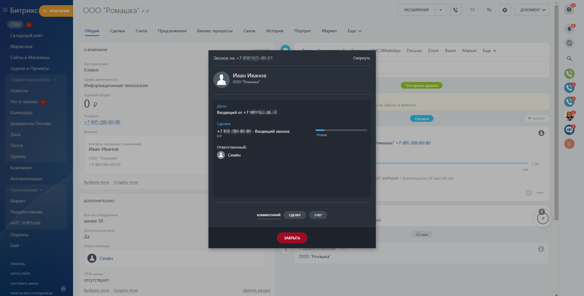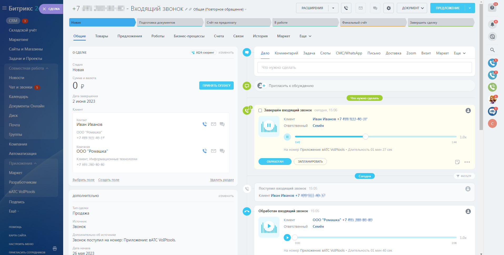 Интеграция Виртуальной АТС VoIPtools с CRM-системой Битрикс24.