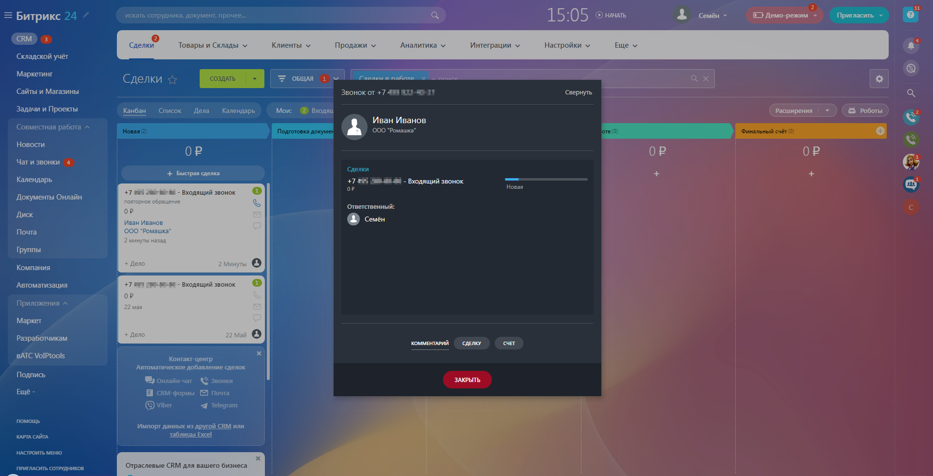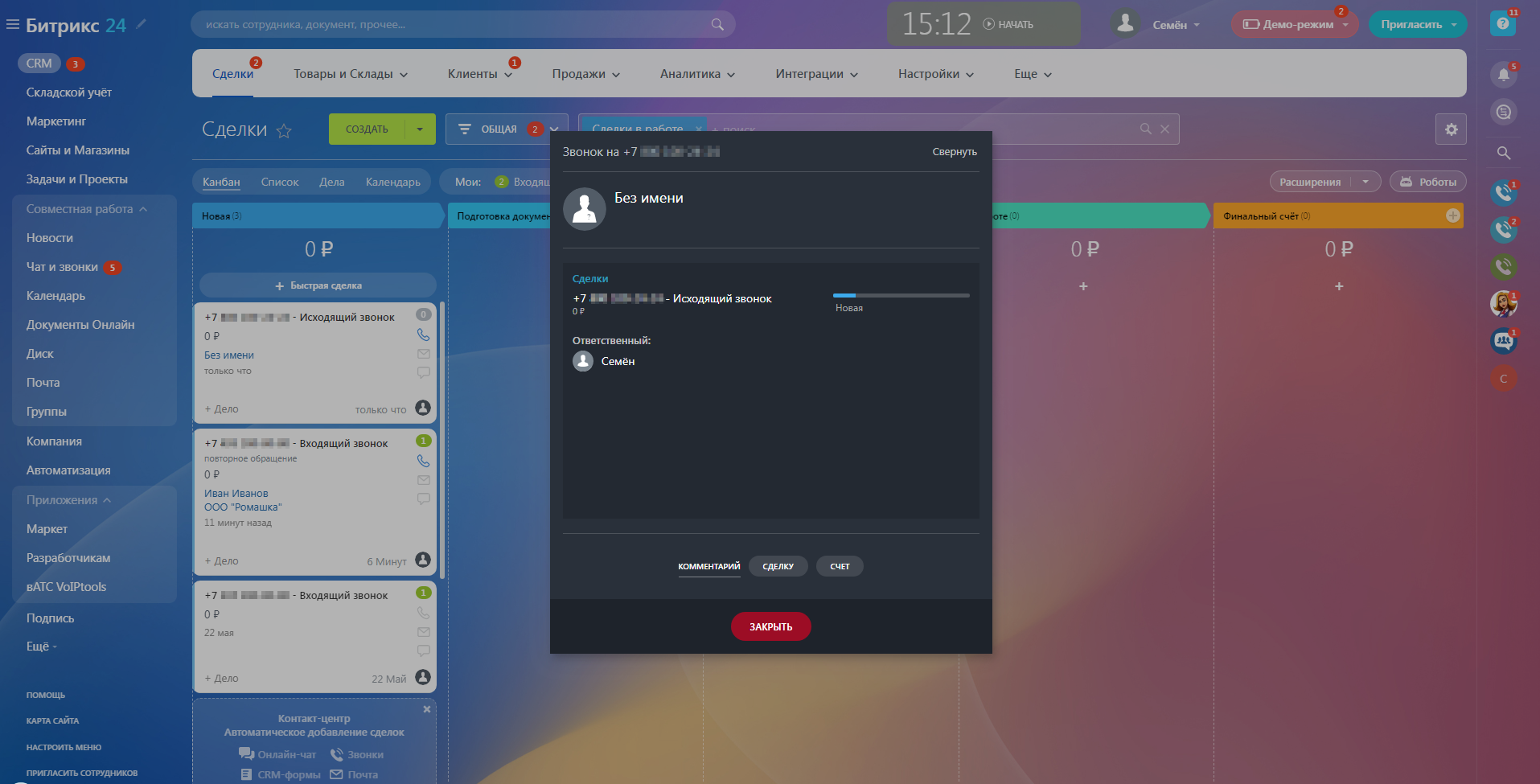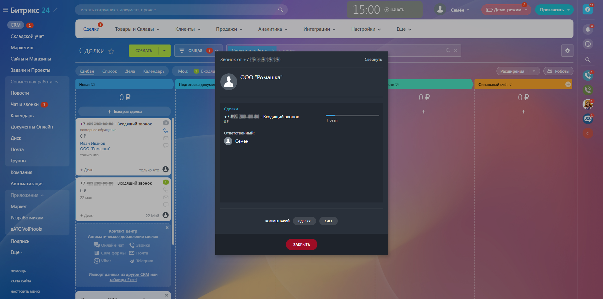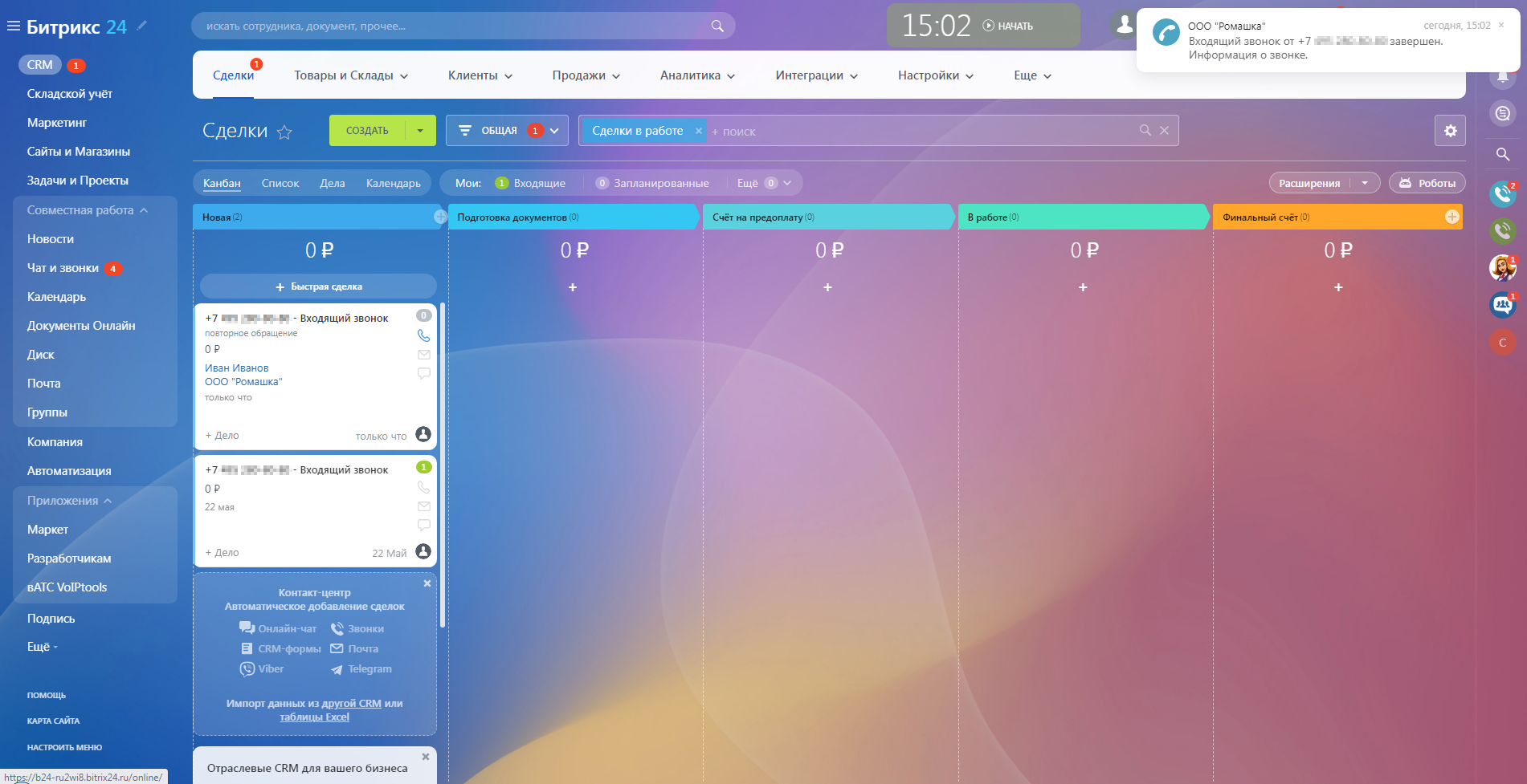 Интеграция Виртуальной АТС VoIPtools с CRM-системой Битрикс24.