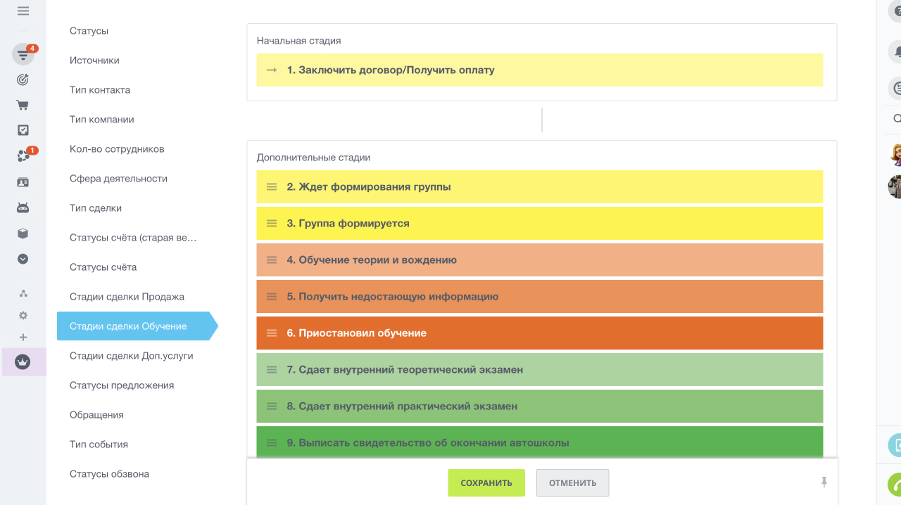 Стадии продажи (для лидов и сделок в воронке продаж):