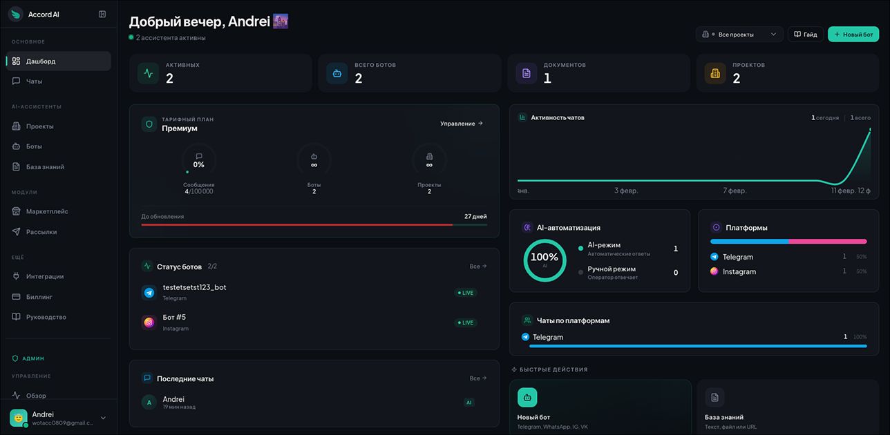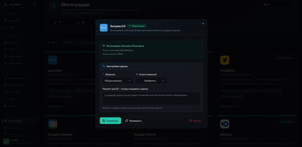 Accord AI — платформа для создания AI-ассистентов, которые общаются с клиентами в