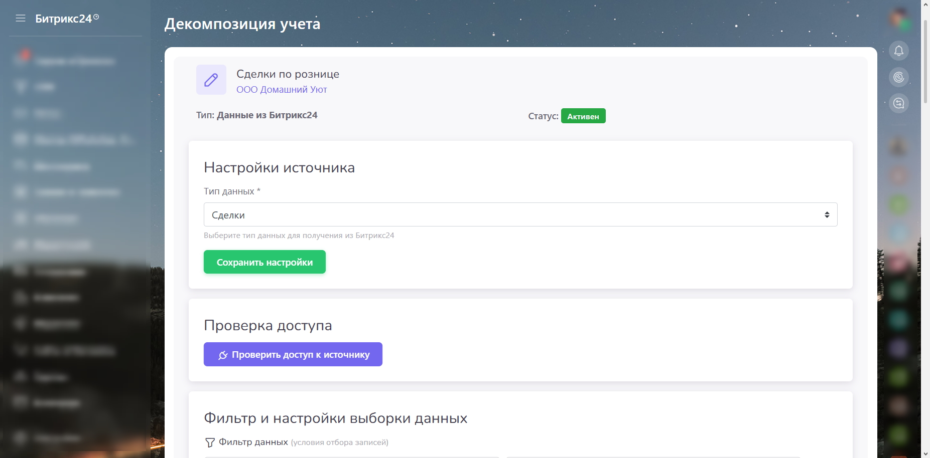 Декомпозиция учета - это инновационная платформа бизнес-аналитики, специально разработанная для экосистемы Битрикс24. Система предоставит предприятиям комплексное решение для анализа данных, создания интерактивных отчетов и прогнозирования бизнес-показателей.