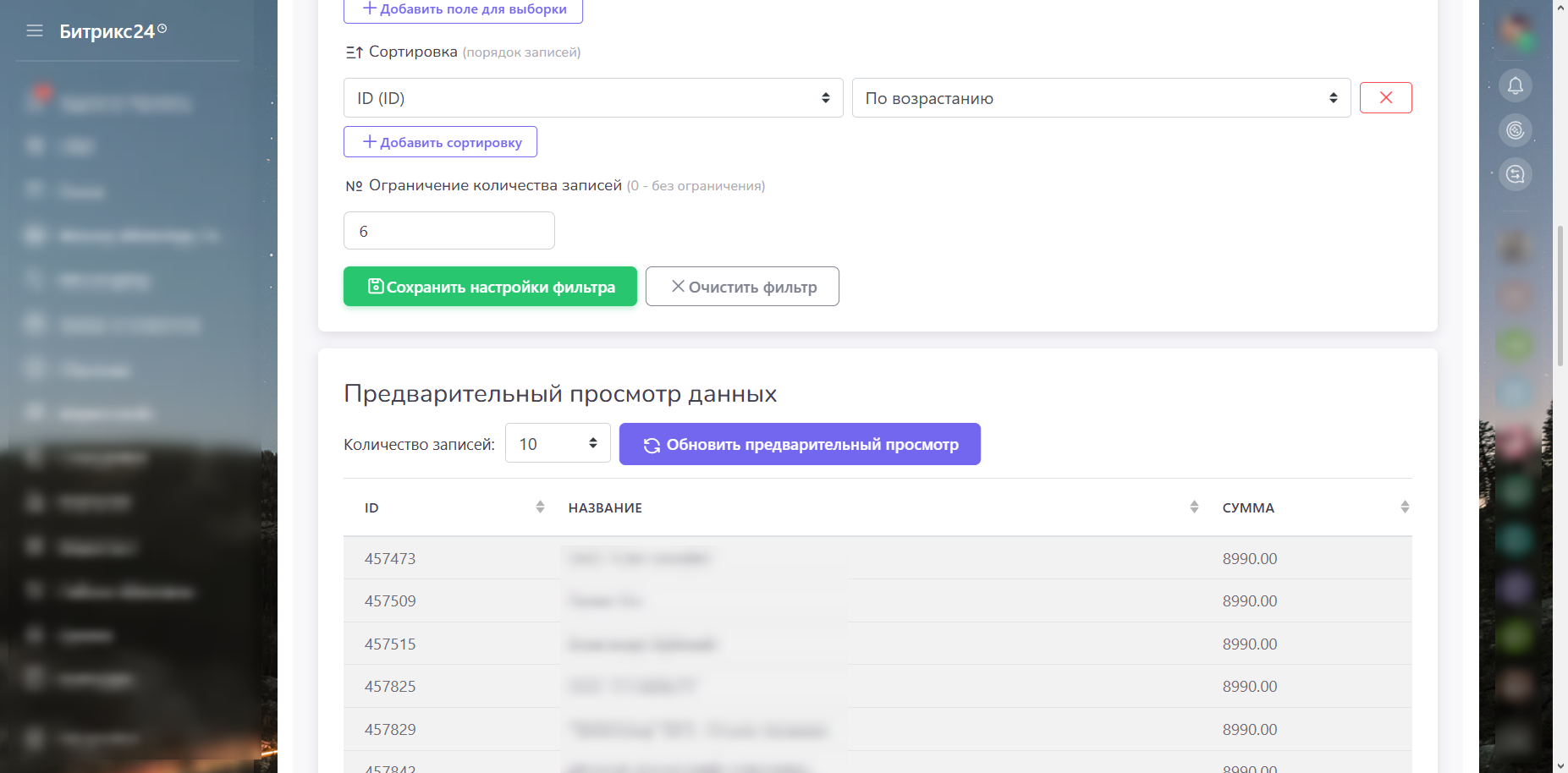 - Гибкая настройка: Фильтры данных и предварительный просмотр для точного контроля информации