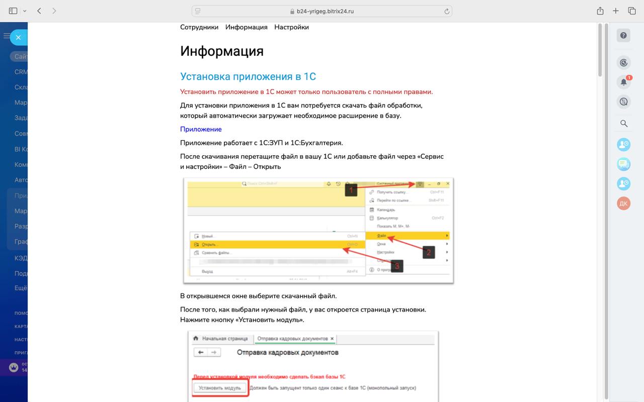 - Следующим шагом необходимо перейти на страницу "Инструкция" (https://palax.bitrix24.ru/~p58I5) в приложении и следовать по шагам в инструкции